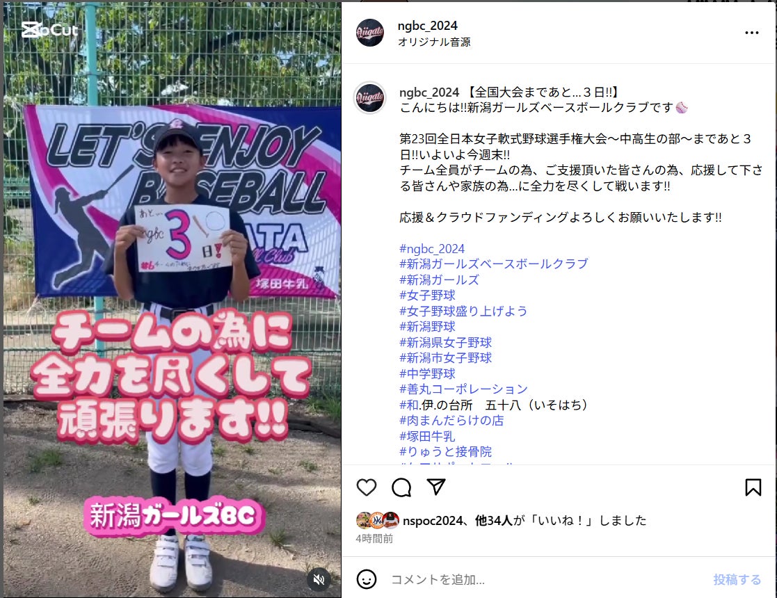 こんにちは。私たちは新潟県の女子中学生で構成された軟式野球チーム「新潟ガールズベースボールクラブ」です。