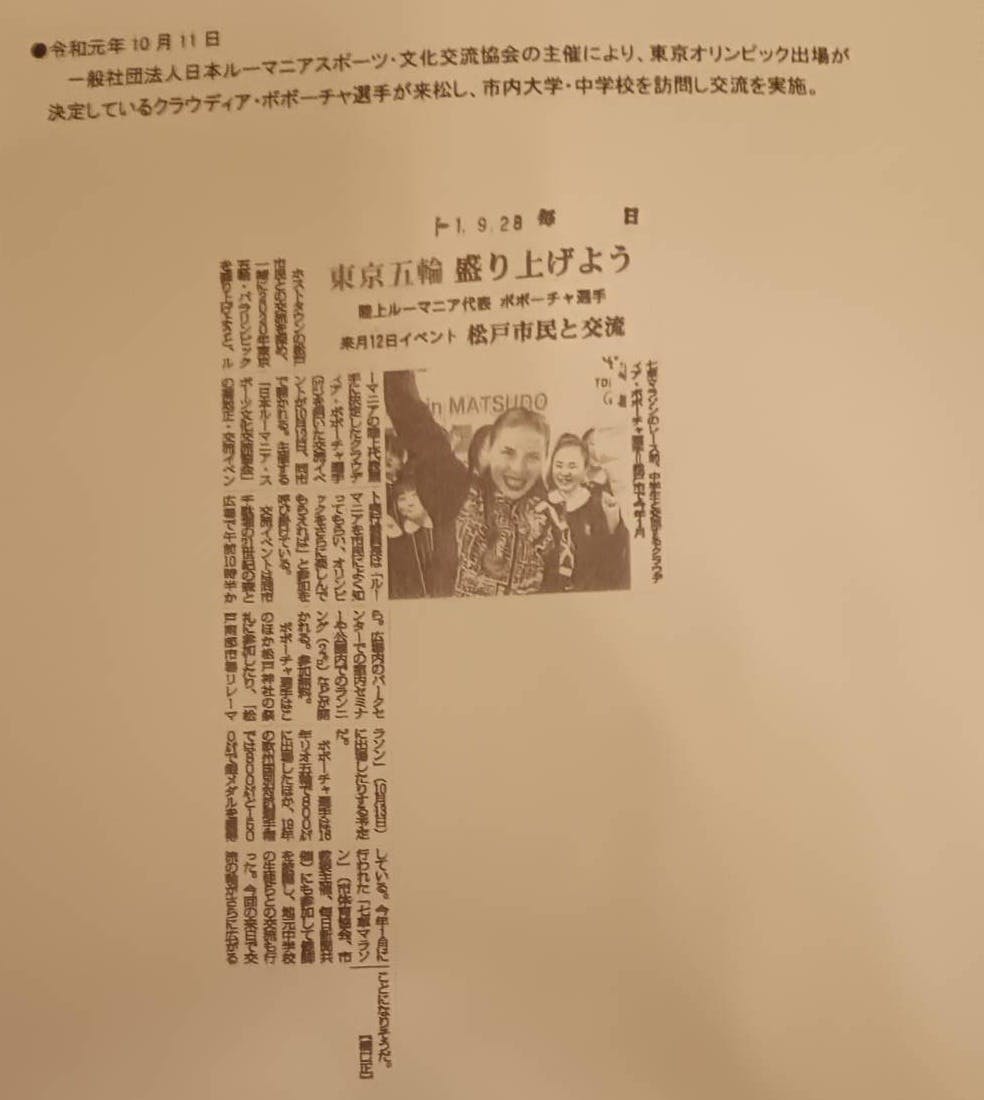 (1)松戸市総合政策部東京オリ・パラ推進担当室(現東京オリ・パラ推進課)様と第61回松戸市七草マラソン大会へのルーマニア選手派遣について協議を始める(平成27年9月)