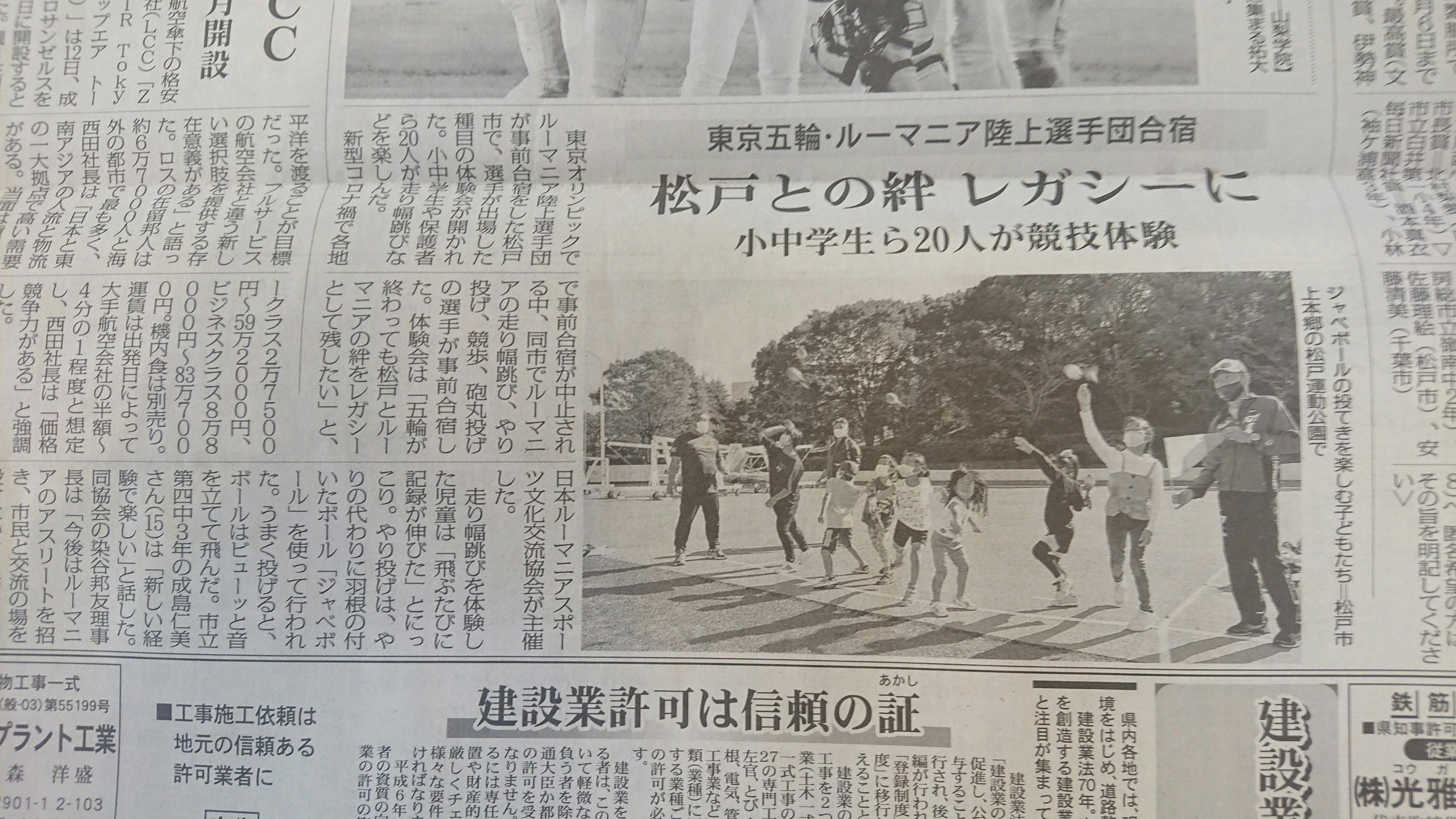 (34) 松戸運動公園陸上競技場で「ルーマニア事前キャンプレガシー交流活動」を開催予定(令和4年2月19日)