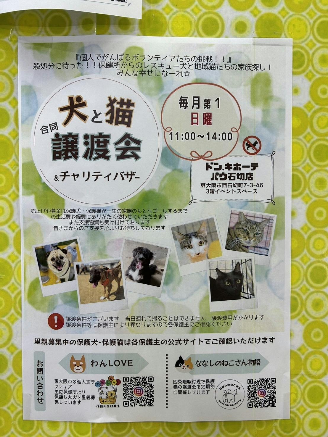 毎月第1日曜日に犬と猫の合同譲渡会を行ってらっしゃいます!