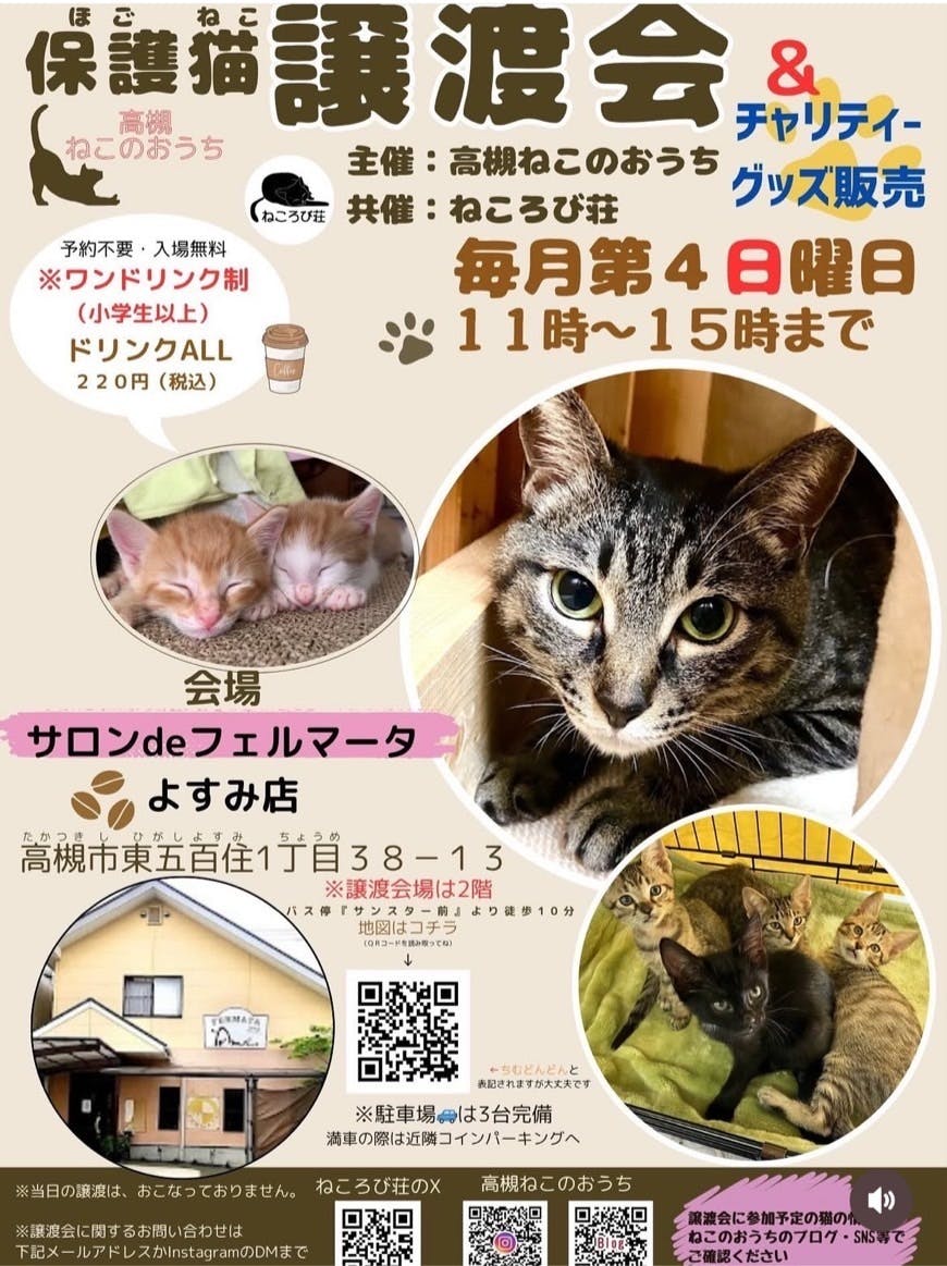 毎月第4日曜日に、サロンdeフェルマータよすみ店にて譲渡会をされております!