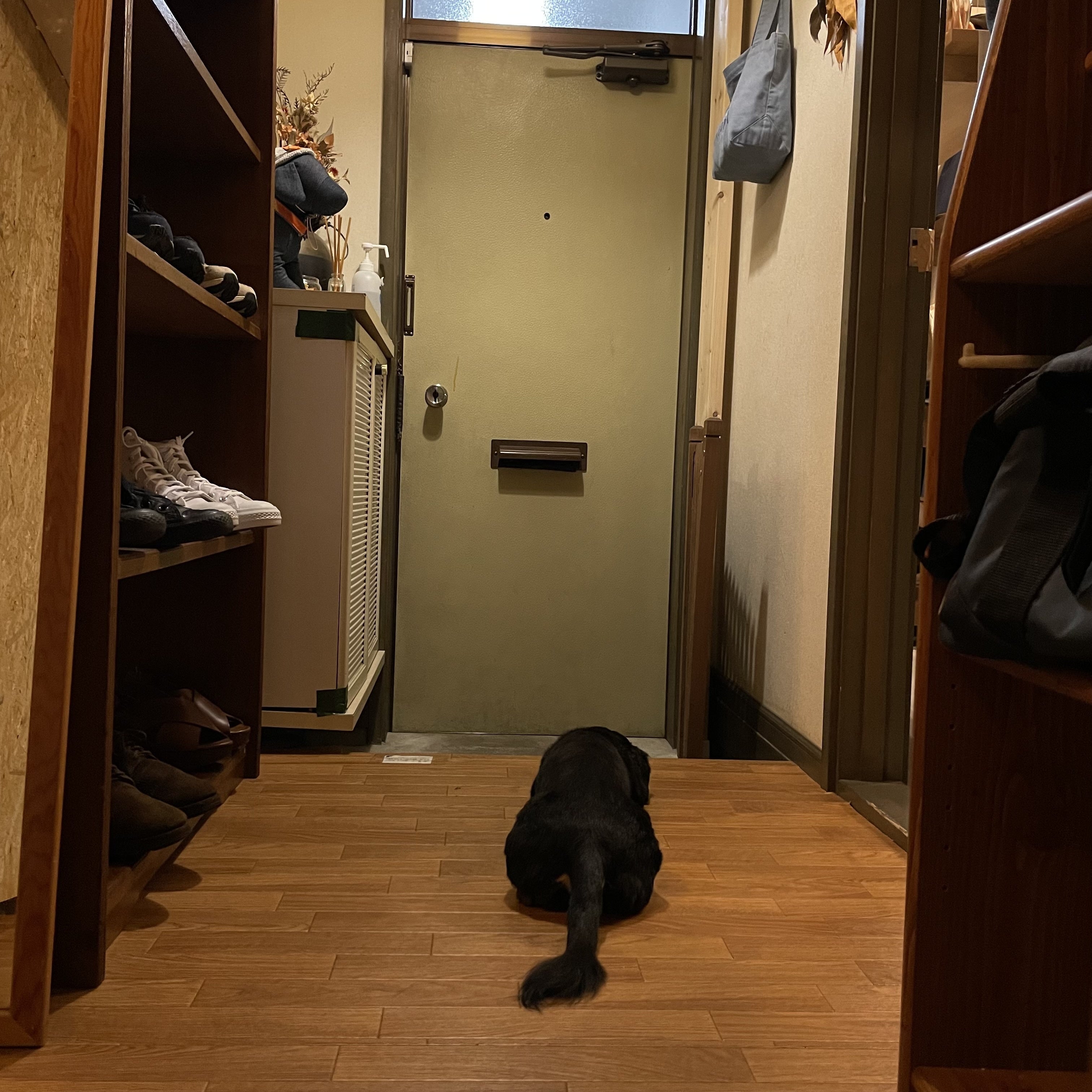 (お客さまを入口で待つきっちょむ)