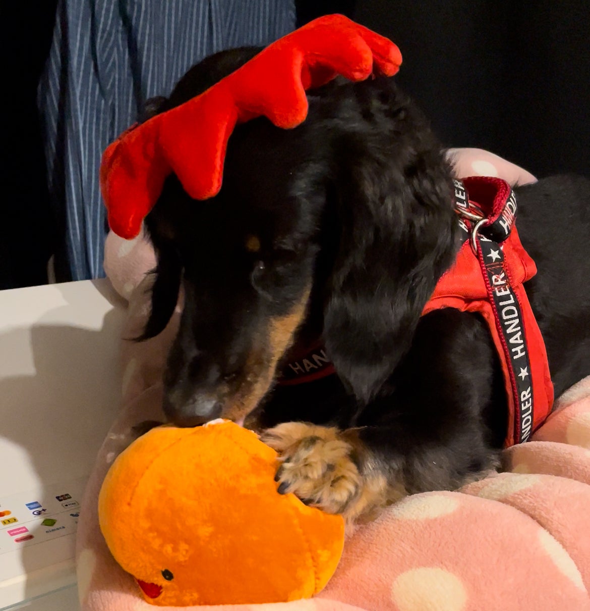 (頂いたおもちゃに夢中なきっちょむ)