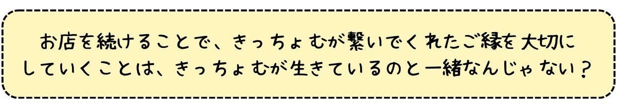 きっちょむ店長と歩んだ日々の“ つづき ”であり、そして、“ 新たなはじまり ”でもあります。