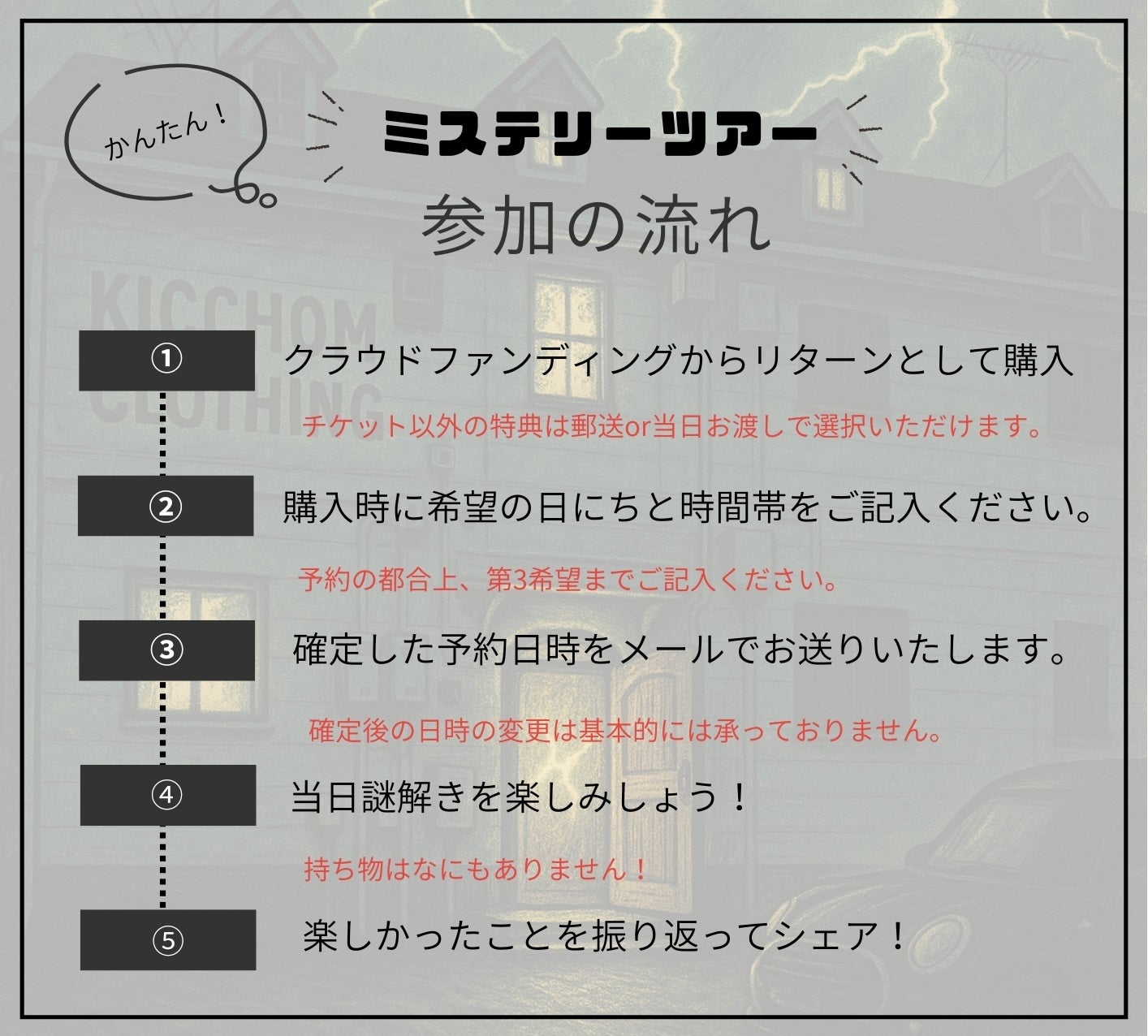 熟考を重ねてたどり着いたのが、古着屋敷きっちょむというストーリー体験型ミステリーツアーの企画でした。