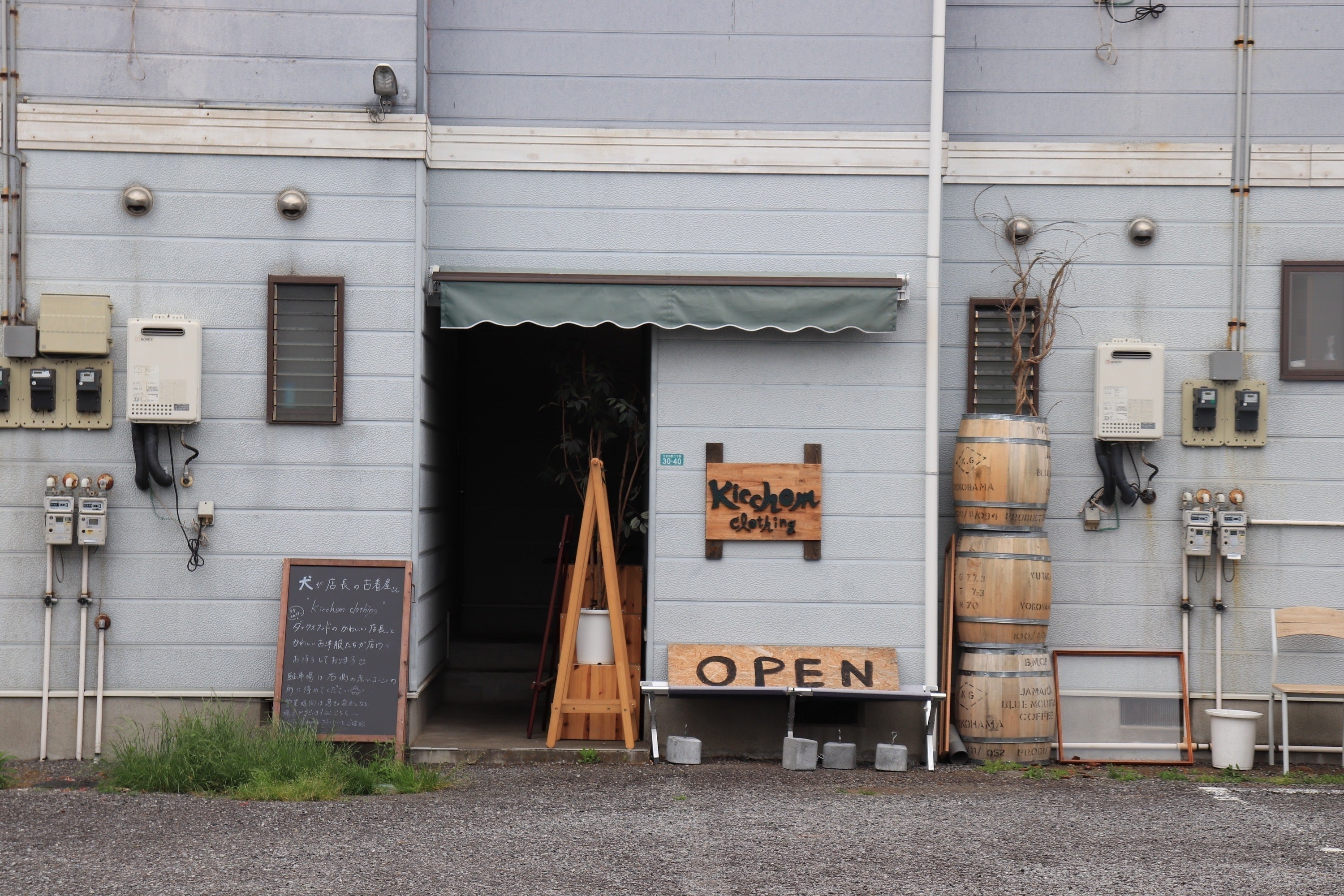 私たちは、茨城県の阿見町という場所で、"犬が店長の古着屋 kicchom clothing"(キッチョムクロージング)を営んでおります。