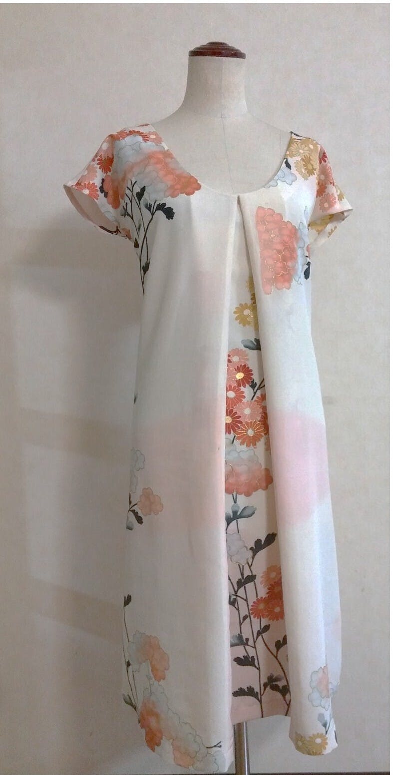人気のワンピース。着丈を短くすればブラウス風に、長く仕立てればフォーマルドレスとしても活躍。着物の柄や素材に合わせて、自由にアレンジ可能です。年齢やシーンを問わず、長く寄り添ってくれる一着。