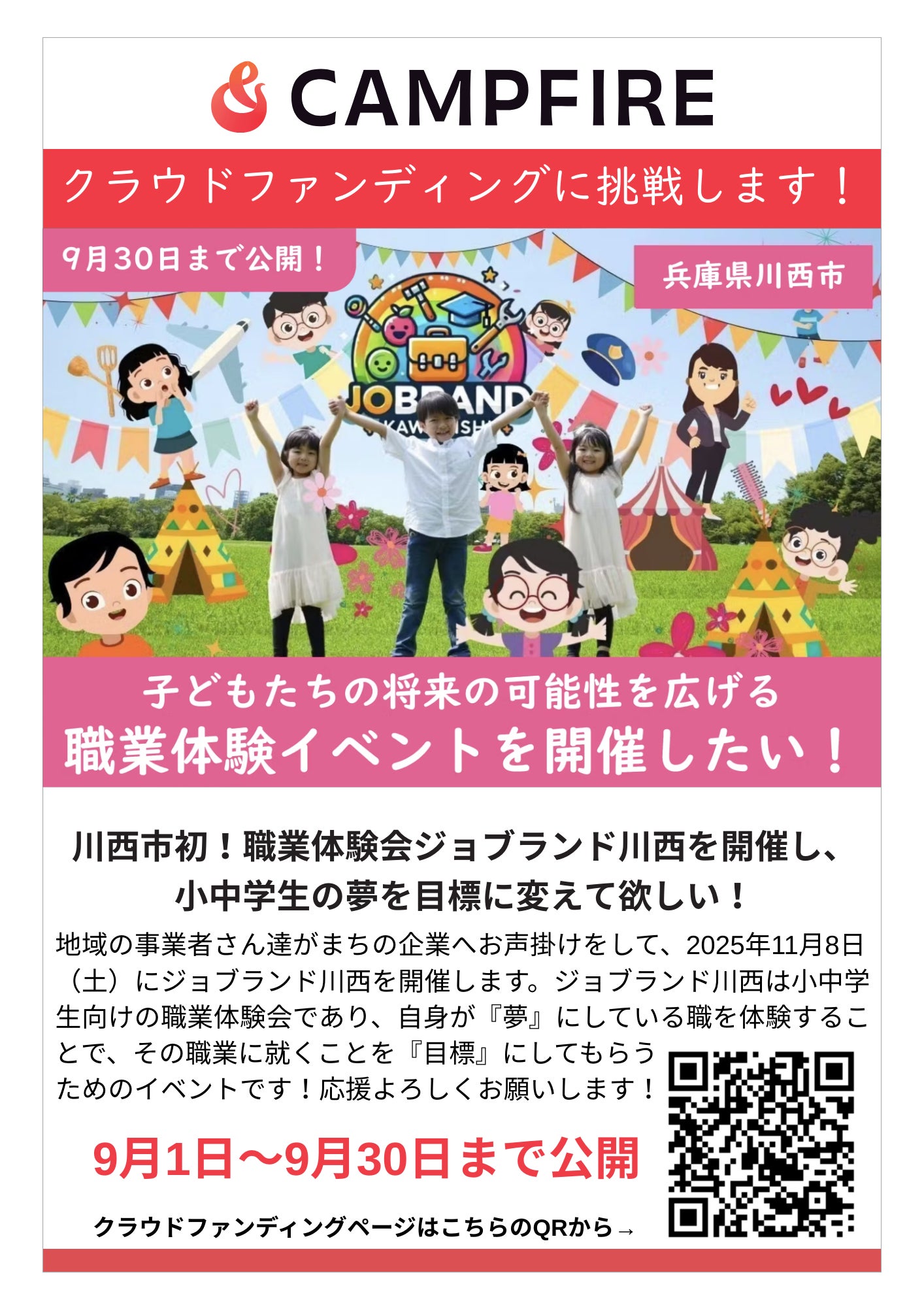 このクラウドファンディングは、単なる資金集めではなく、地域の思いをつなぐプロジェクトです。大人の応援が輪になって広がり、それが子どもたちに届いたとき、川西の未来はもっと明るく、もっと楽しくなると信じています。