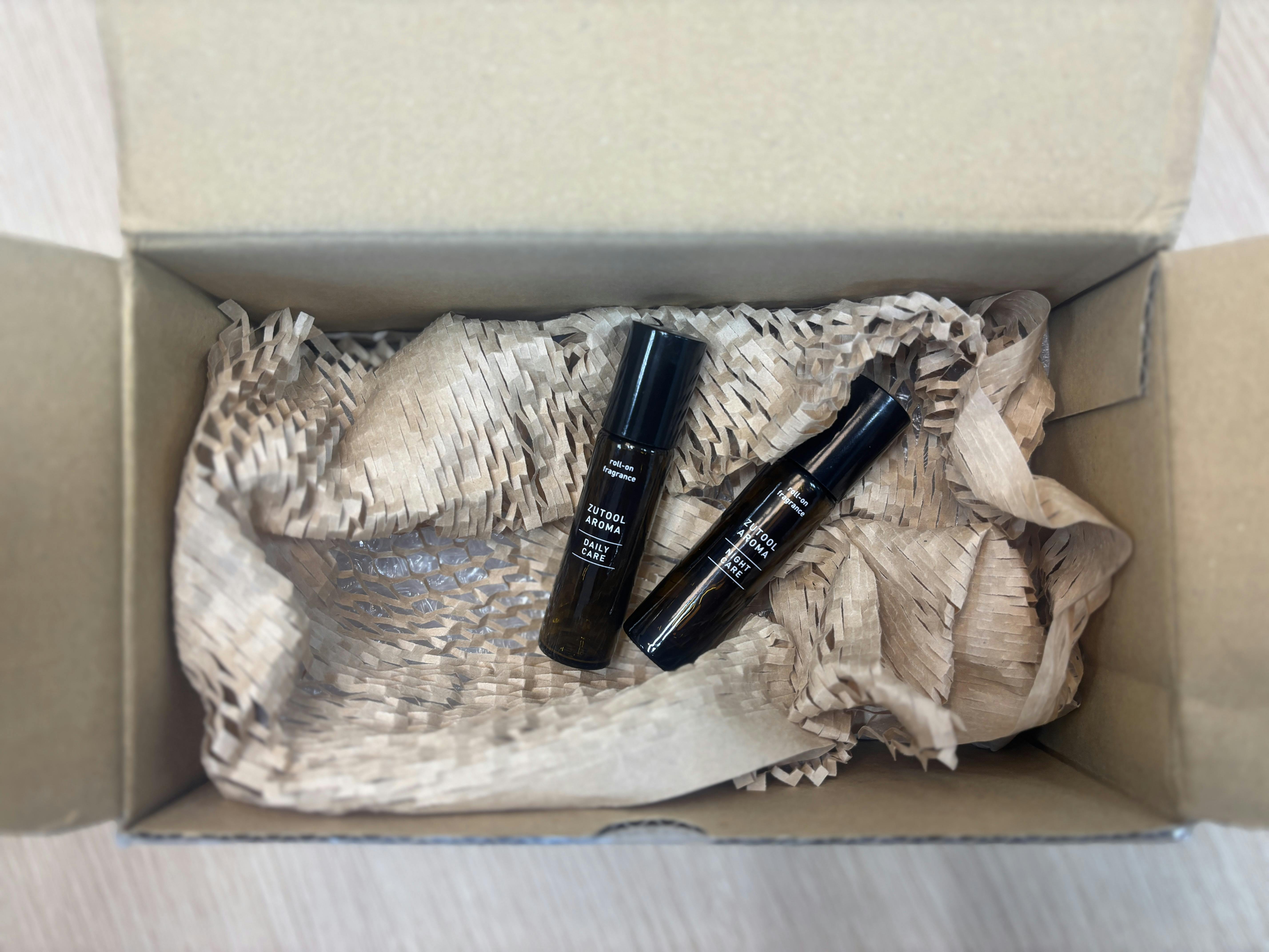 容量は10mlとZUTOOL AROMA空間用アロマタイプと同じ量ですが、ロールオンタイプのほうが、細長いボトルになっているのが特徴です♪リップクリームサイズでポーチに入れて持ち歩ける、使い勝手のよいボディー用アロマとなっています。