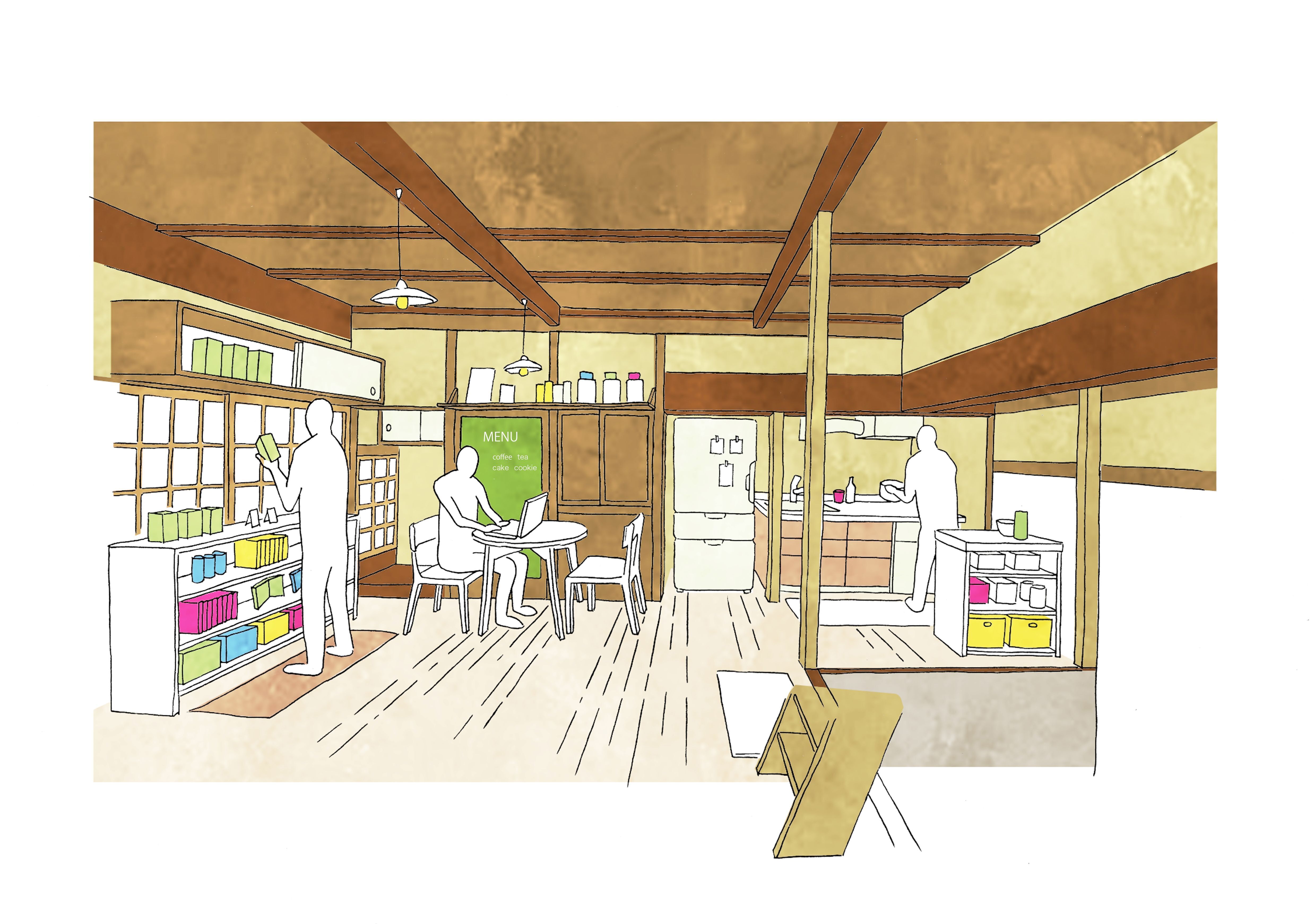 拠点となる場所は、祇園神社と來光寺に挟まれた旧鹿毛屋敷隠居邸です。ここは明治10年前後に建てられたという150年ほどの歴史をもつ古民家。この貴重な文化財を残すだけでなく、新たな価値を加える形で生まれ変わらせたい。私たちは、この古民家を「夢を持つ若者が輝く場」としてリノベーションすることを決意しました。ここをリフォームして、1階は日替わりシェアキッチンとショップ、そして2階をシェアオフィスにします。