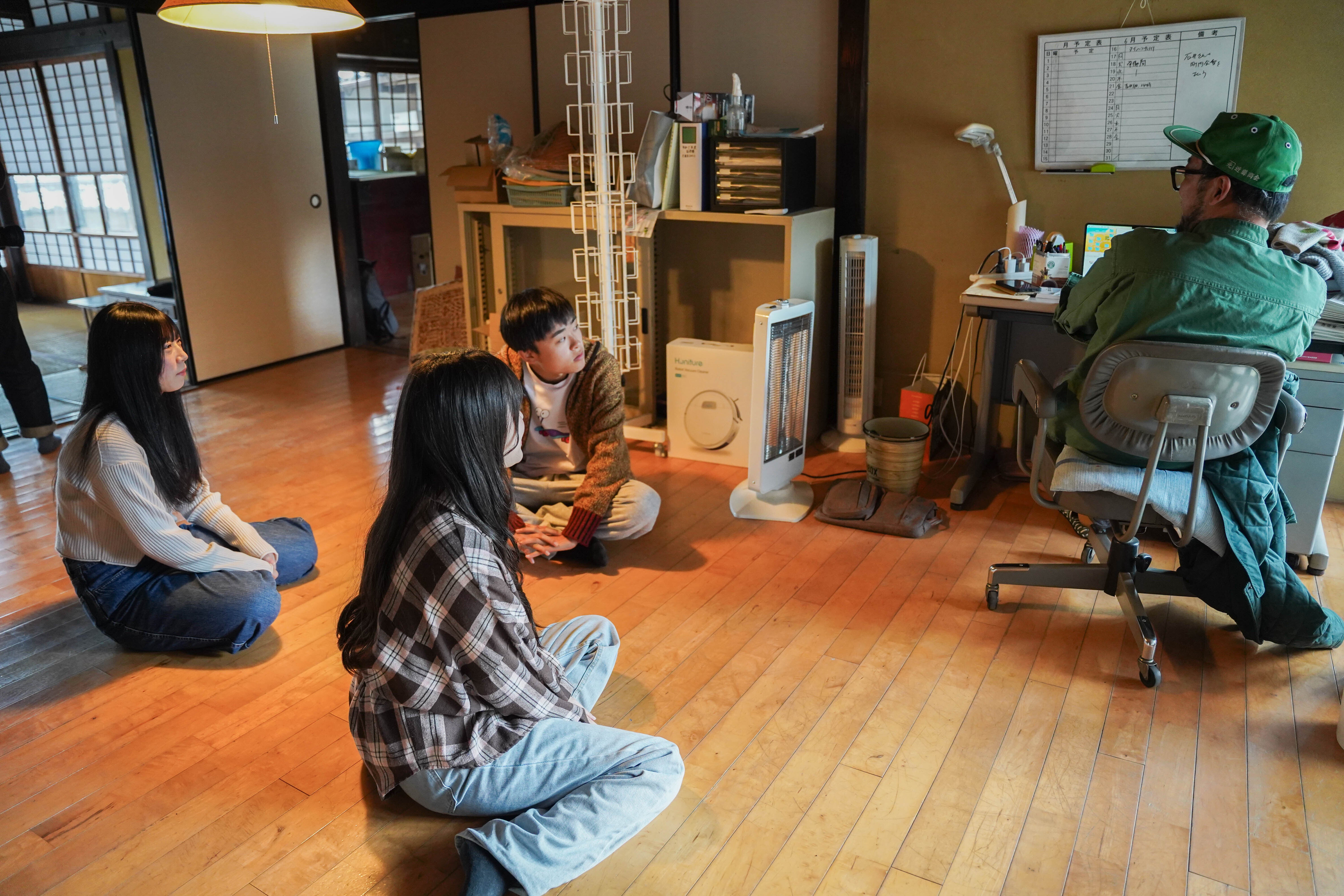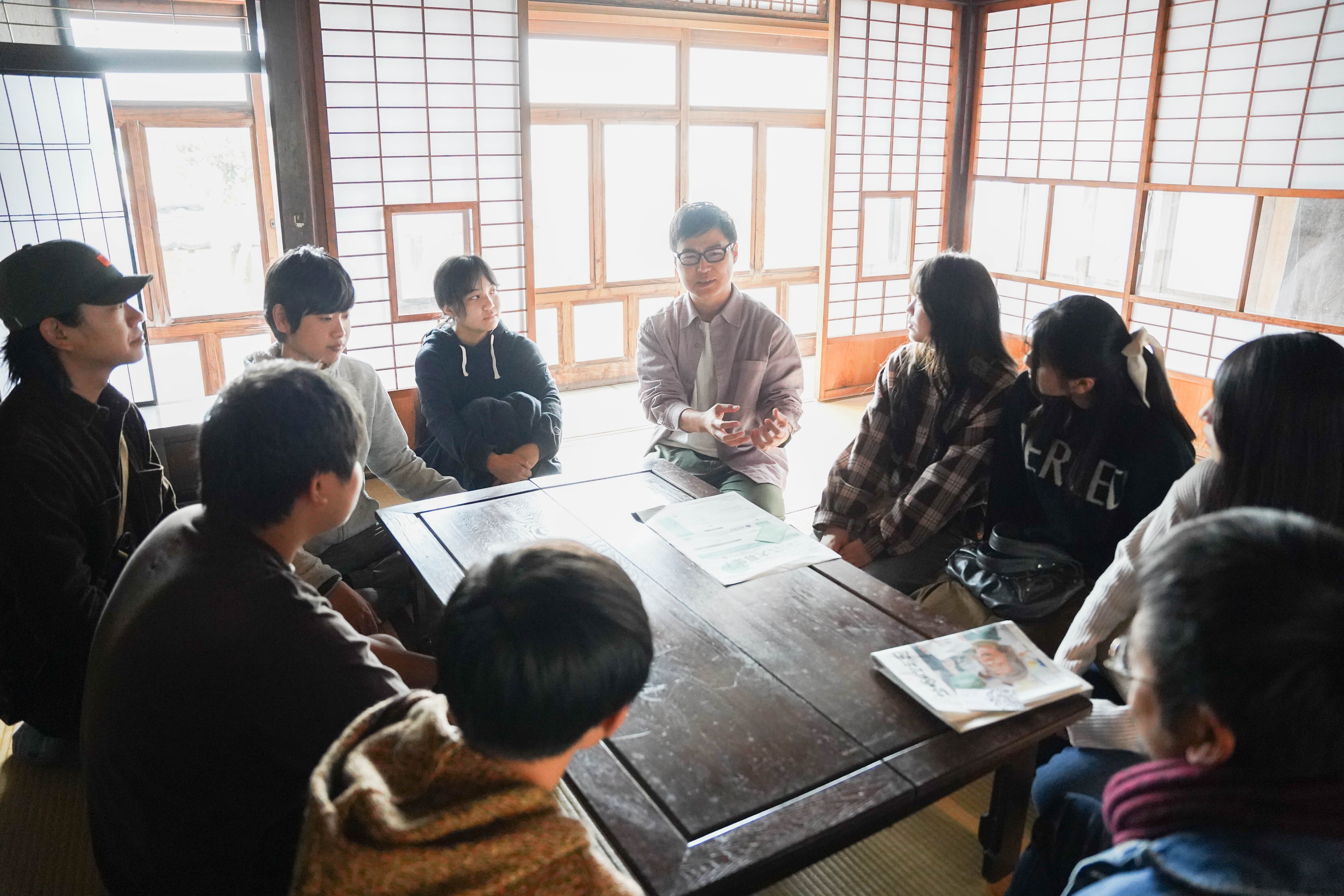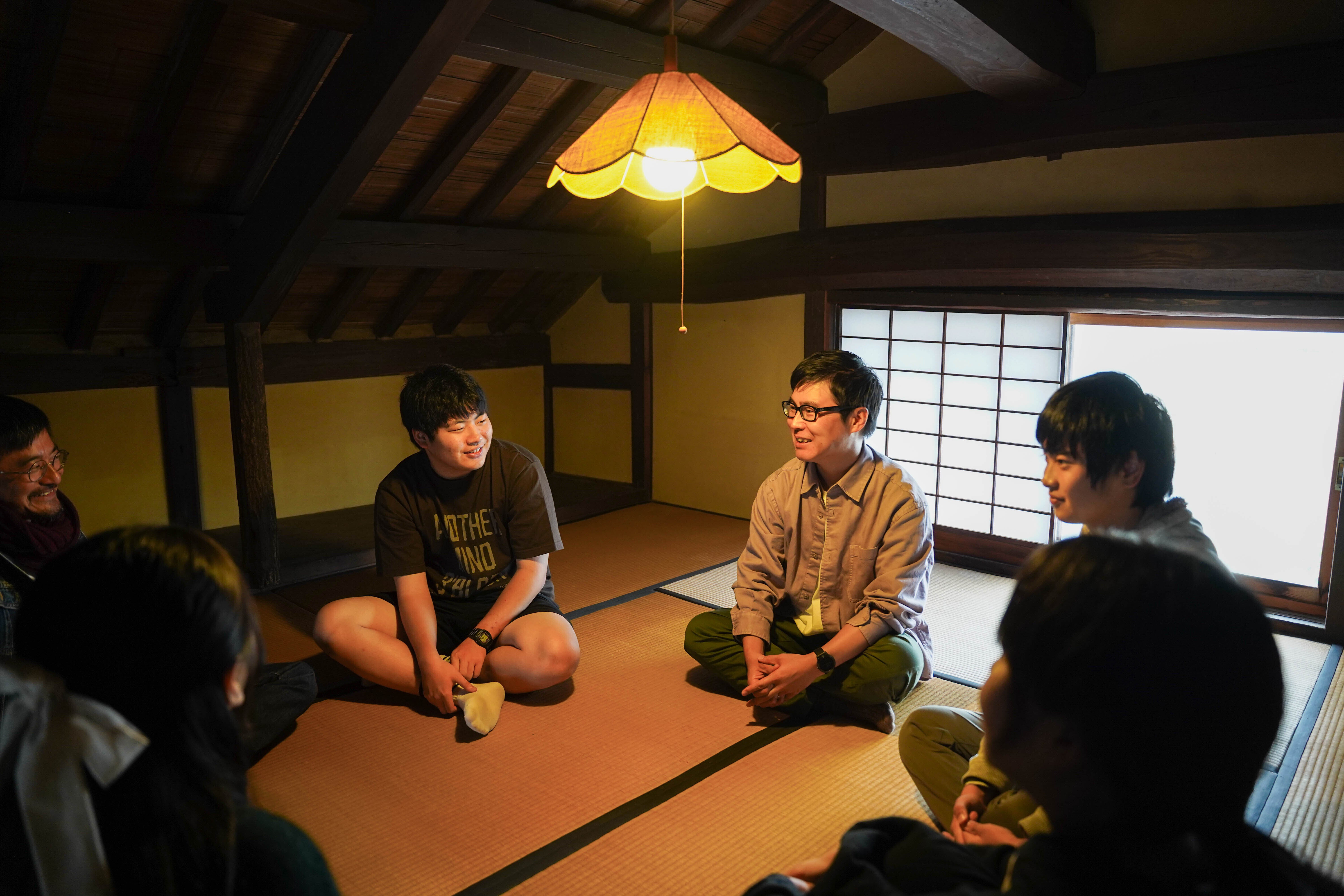 1階の床の間のあるダイニングエリアで若者たちと懇談