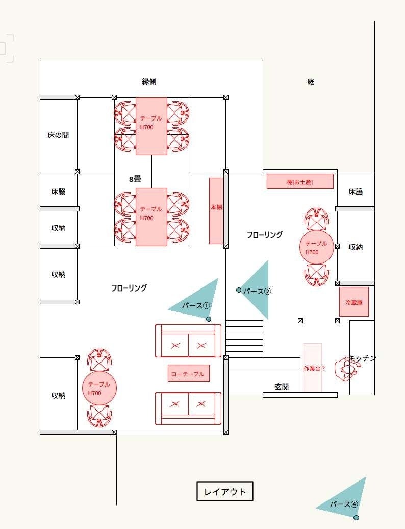 座卓とテーブルが席があります。自由に好みのスタイルで使ってください