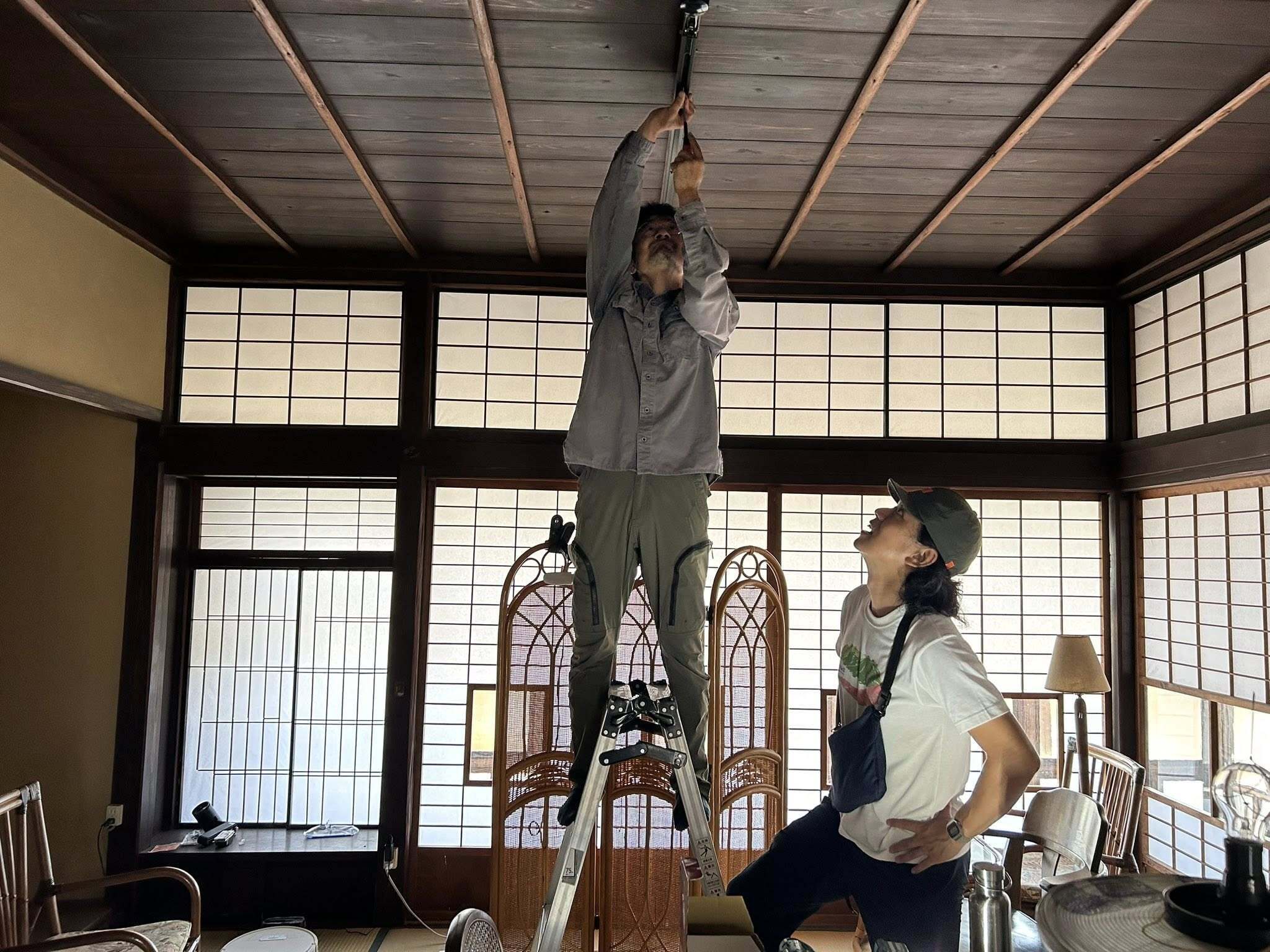 古民家あるあるですが、電気配線やコンセントが少ないので、ちょっとづつ美しさを崩さないように足しています。