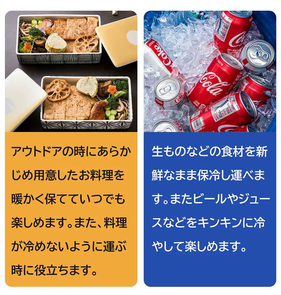 また、電源なしの状態でもクーラーボックスのような保冷・保温効果があります。