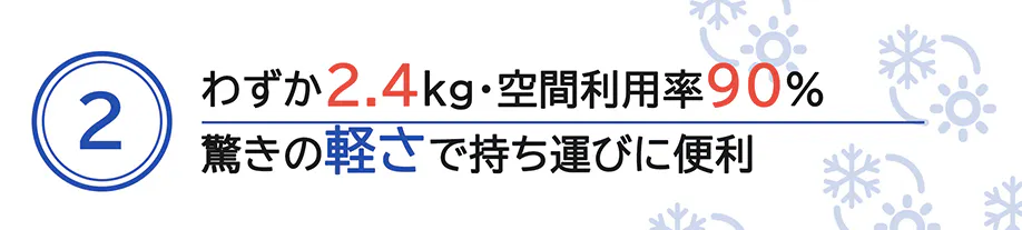 ●僅か2.4kg、驚きの軽さで持ち運びに便利