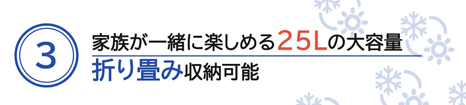 ●家族が一緒に楽しめる25Lの大容量、空間活用効率90%