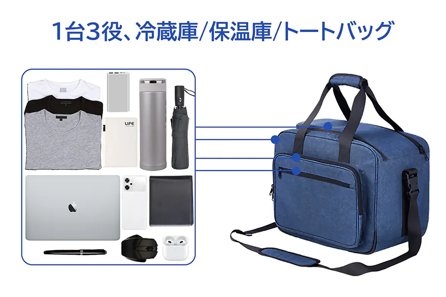 また、冷蔵と保温の2役以外、普通のトートバッグのように使用することもできます。
