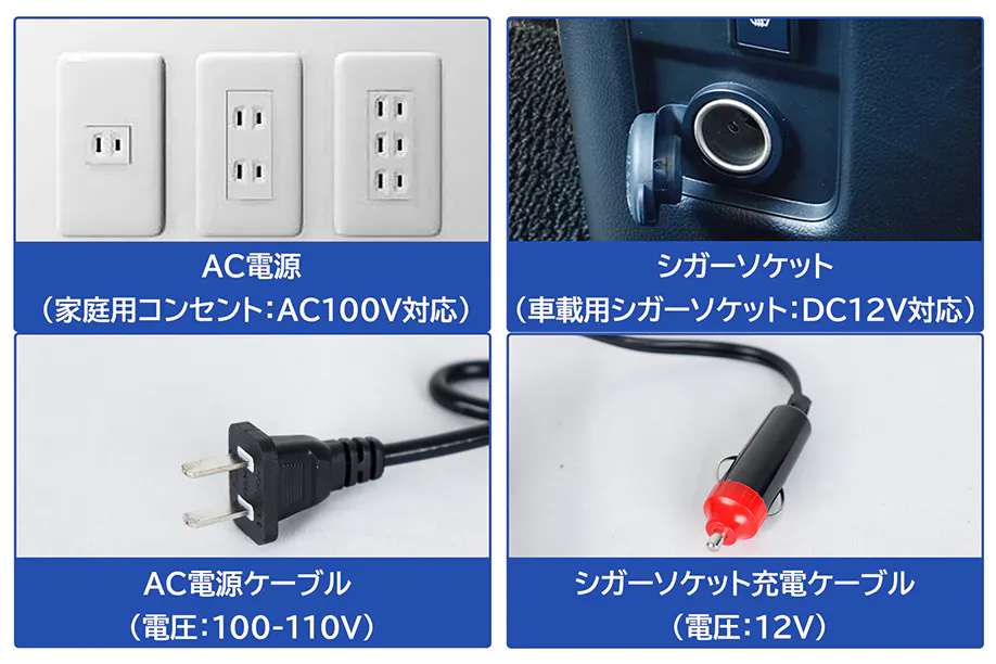 ●シガーソケット&AC電源2種類の給電タイプに対応、お宅でもアウトドアでも大活躍
