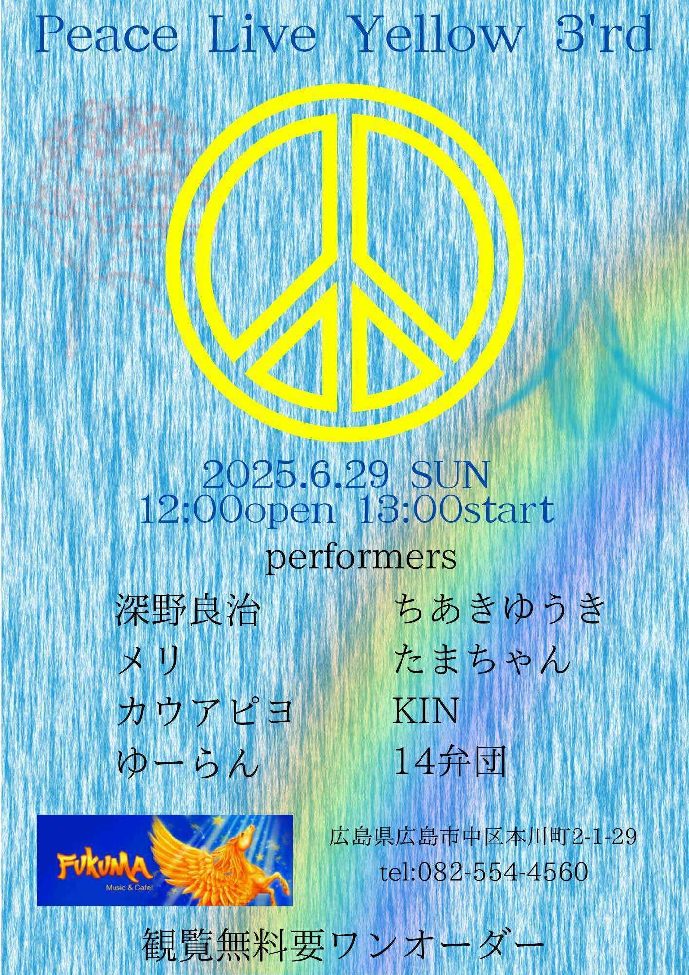 そして今週6/29日曜日は広島本川 「MusicCafeフクマ」さんで我がBCB(伊藤勉)主催のPIECE LIVEです。13:00〜17:00