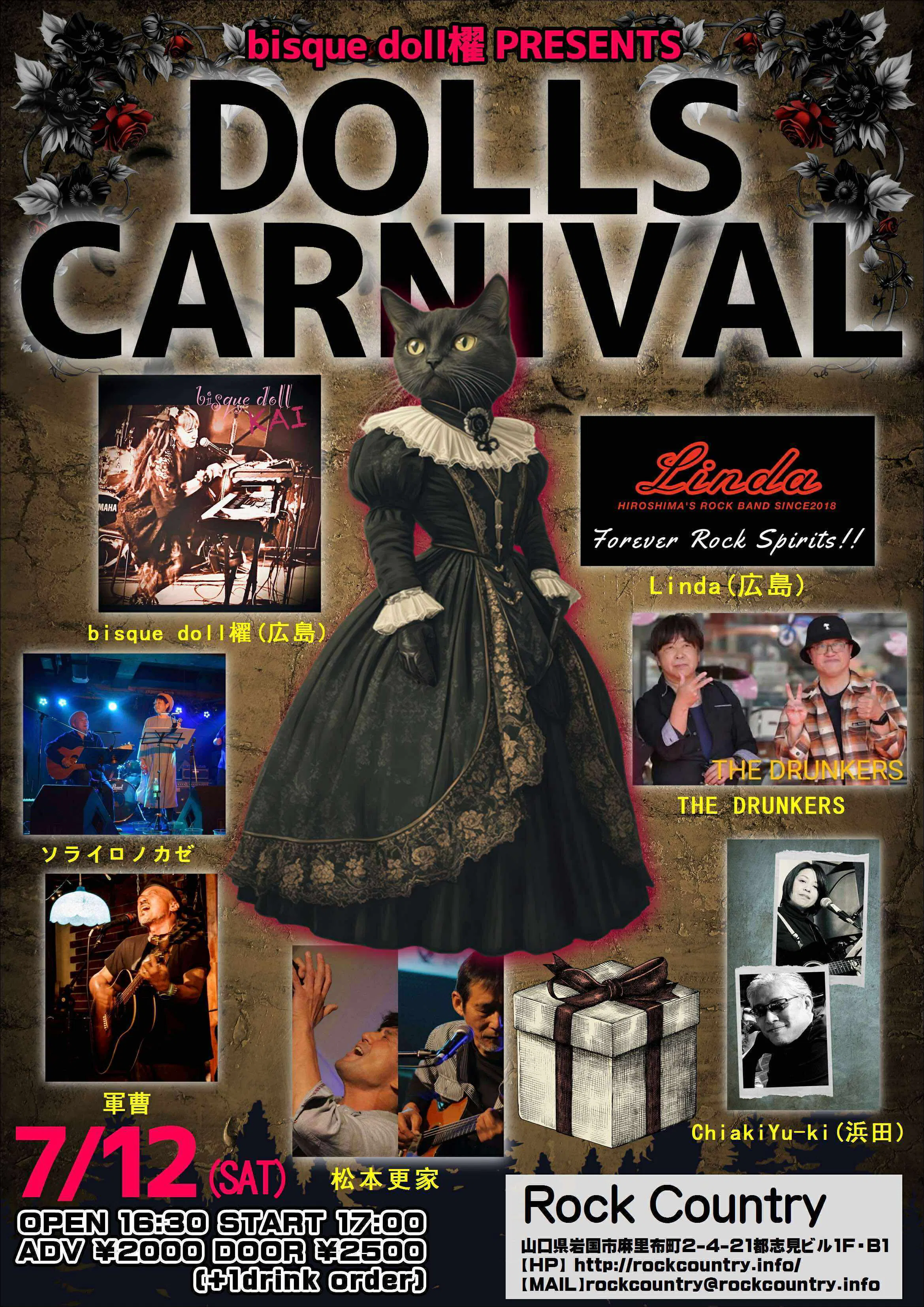 7/12 土曜日はbisquedoll櫂Presents岩国RockCountry「DOLLS CARNIVAL」にChiakiyu-kiで参加します。岩国RockCountryは初めて出演させて頂きます。