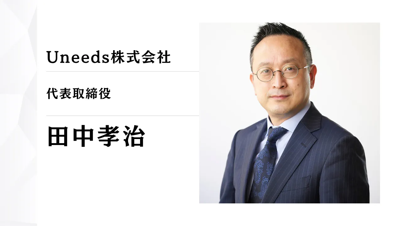 私は、Uneeds株式会社の代表取締役・田中孝治と申します。