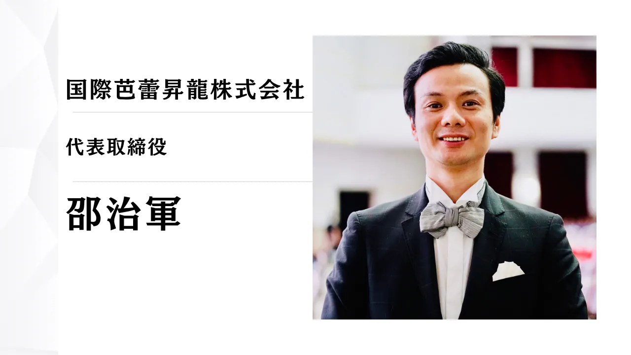 そしてもう一人の中心人物である邵治軍(ショウ・チグン)は、中国出身でありながら、2018年に日本で国際芭蕾昇龍株式会社を設立し、世界的な舞台プロデューサー、コンクール審査員、バレエ振付家・教師として活動しています。