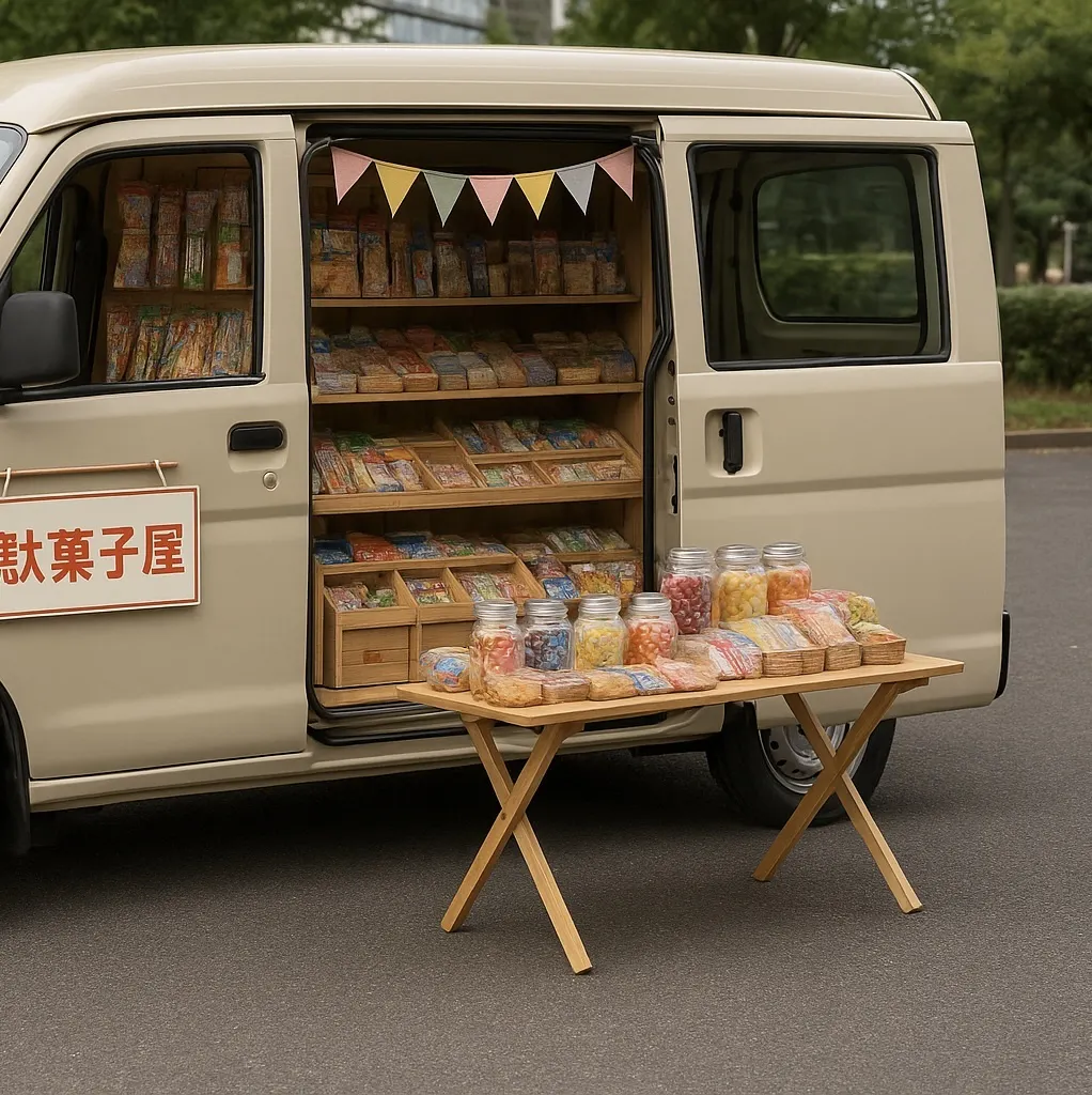 "全国を駆け巡る 駄菓子屋カー”
