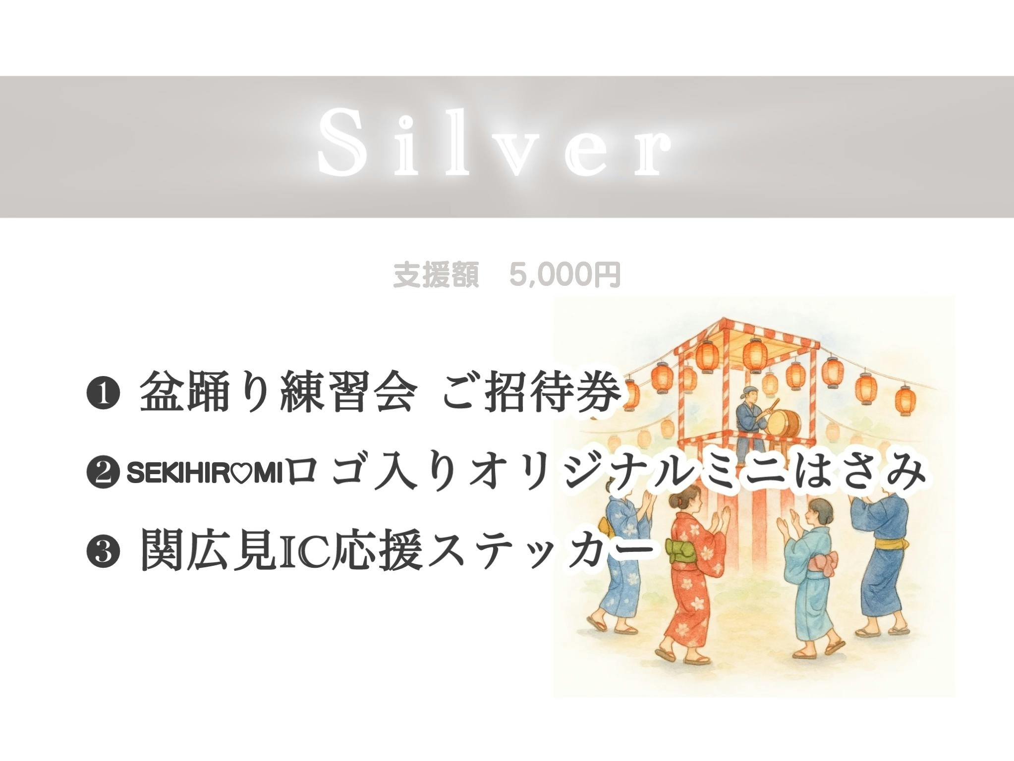 SILVERパック(5,000円) 関広見まつりサテライト会場 応援盆踊り練習会の招待券 + SEKIHIR♡MIロゴ入りオリジナル限定ハサミ 1,100円 + 関広見IC応援ステッカー 500円