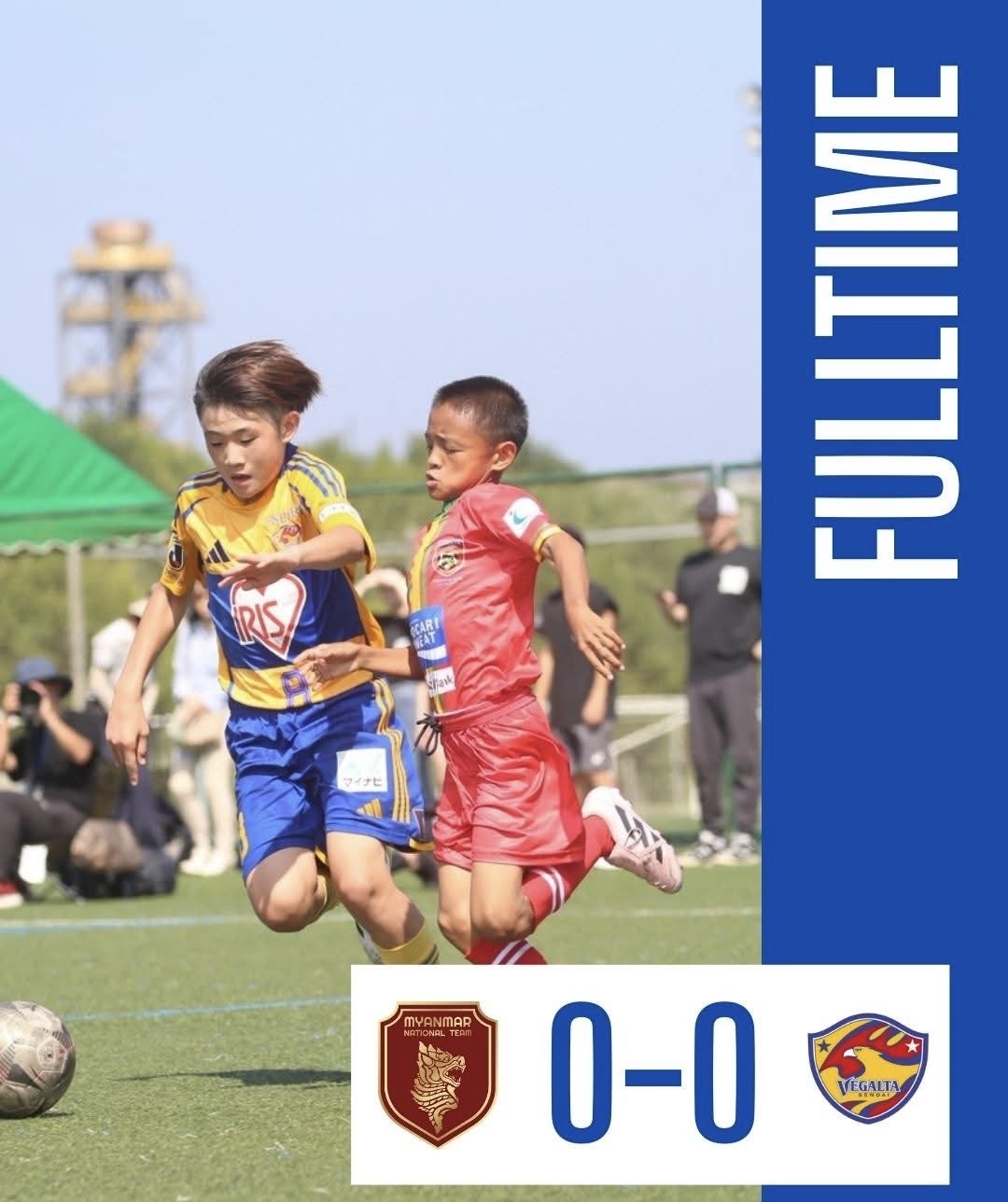 8/19(火) 9:10am、ミャンマーU-12チームのワールドチャレンジが開幕しました!ベガルタ仙台との開幕戦、0-0でした。チャンスをいくつも作り出したものの、1点が奪えず、それでも素晴らしい試合を見せてくれました。10:30am、続いて湘南ベルマーレとの試合、0-2。押される状況が続く中、よく耐え凌いでいましたが、コーナーキックから相手の長身選手のヘディングで失点。局面局面では、可能性を感じさせる展開はありながらも、自陣ゴール前でこぼれ球を押し込まれる形での追加失点。そして、試合終了のホイッスル。涙を見せる選手もいました。子どもたちは全力で、持てる力の全てを出せていたと思います。この結果を踏まえ、8/20(水)のグループリーグ残りの2戦に臨みます。宿舎に戻ってからは休息もしっかり取れ、体調も万全に。まだまだ彼らはできると思います!残りの日程も、引き続きの応援をよろしくお願いいたします。
