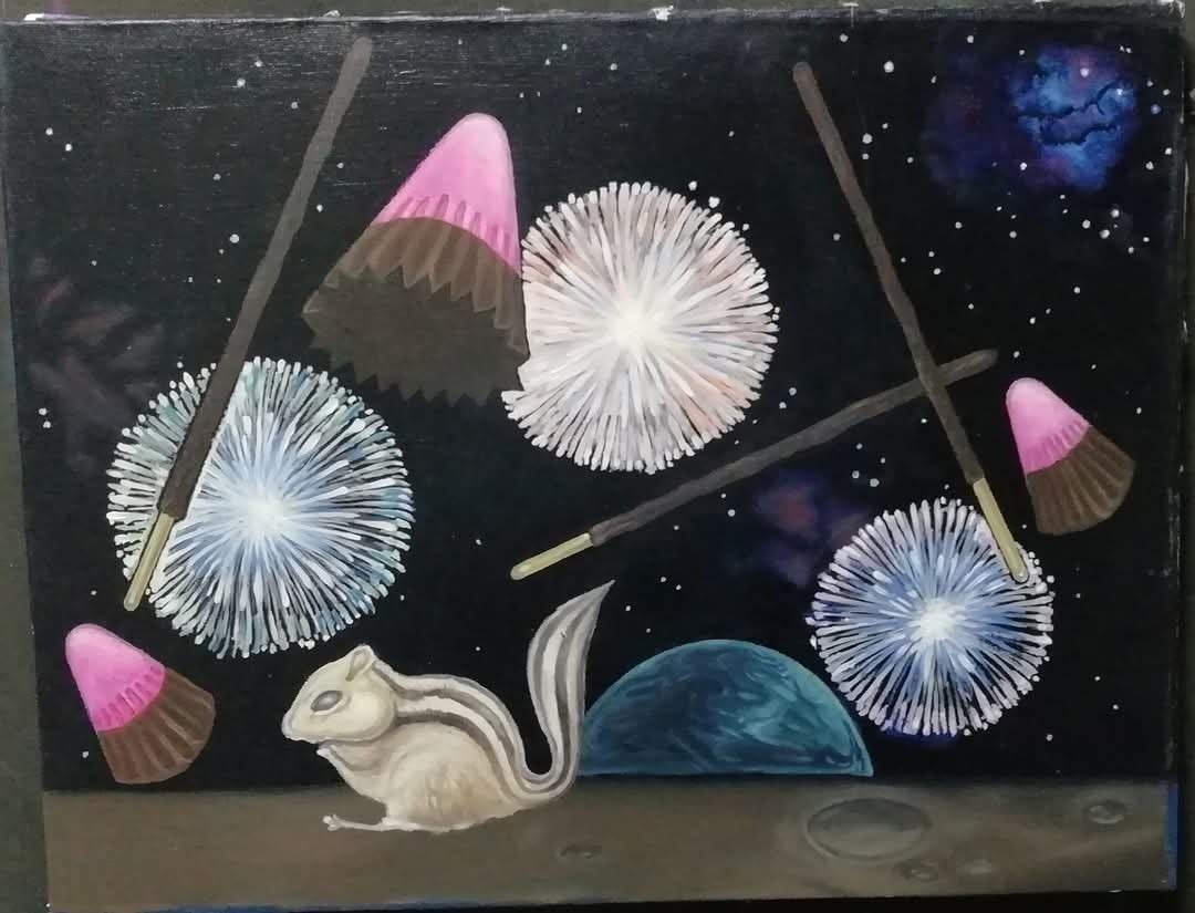 2018・三杉レンジ氏主催による「絵画教室ルカノーズ」にて油絵の1日入門講座を担当する。/「掘りごたつ派」として活動する折にトレードマークだった茶色のドテラを画廊の同胞でもある牧田恵実氏に譲渡。/「Art Lab last show」参加。(秋葉原/Art Lab TOKYO)(年度終わりの常設展として)