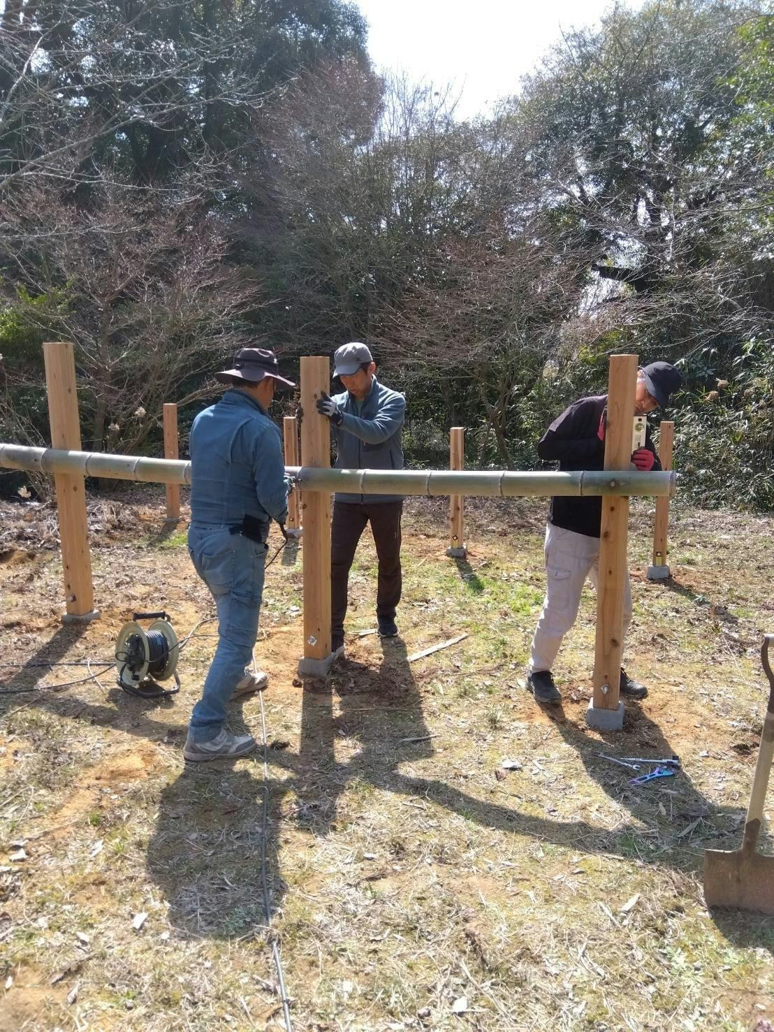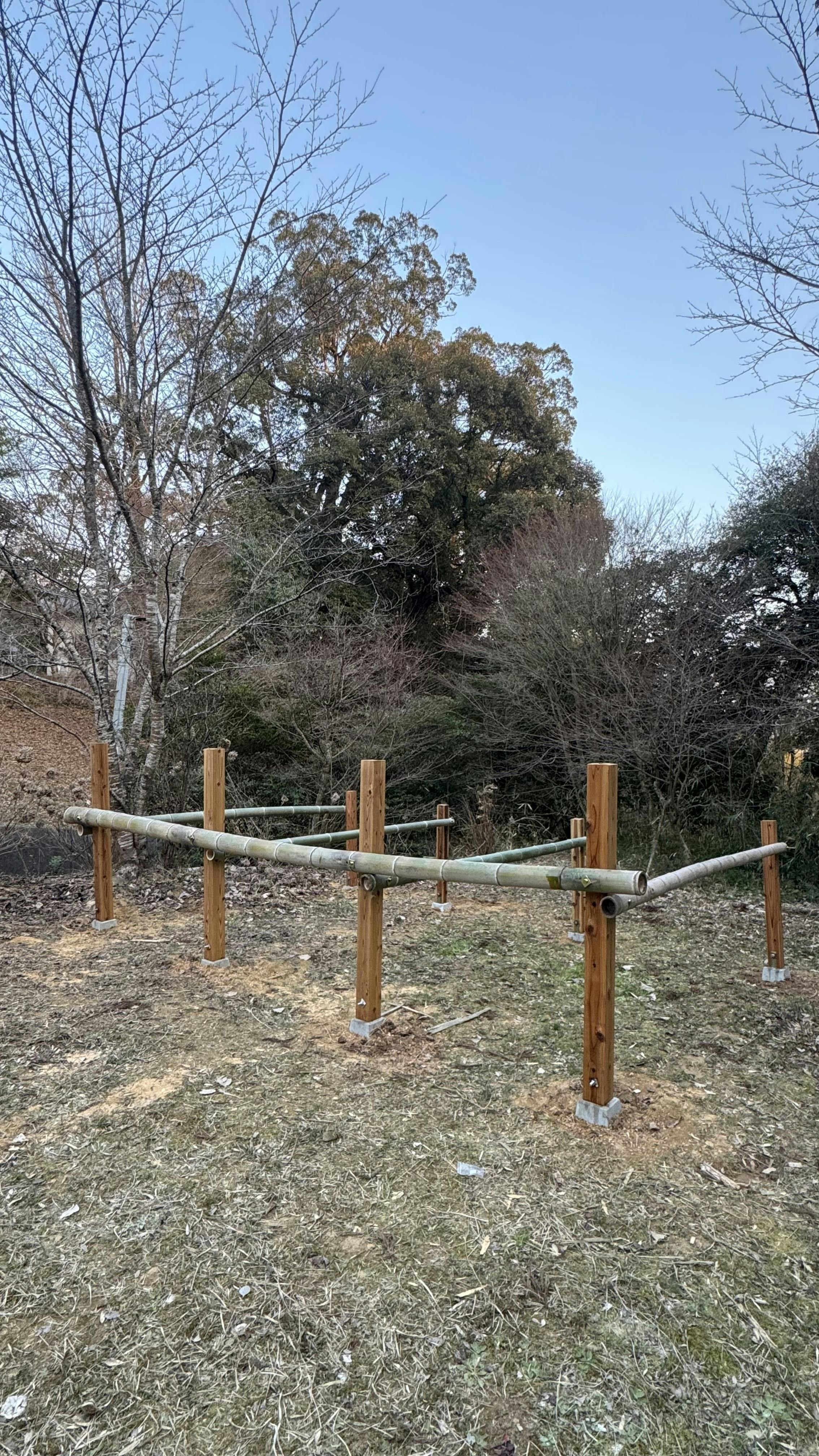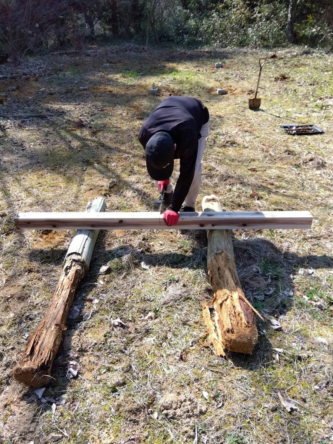 昨年までは写真のようなボロボロに腐った木を使用しておりましたが、今回、コンクリートの束石を土台に使い、新しい木材も購入!