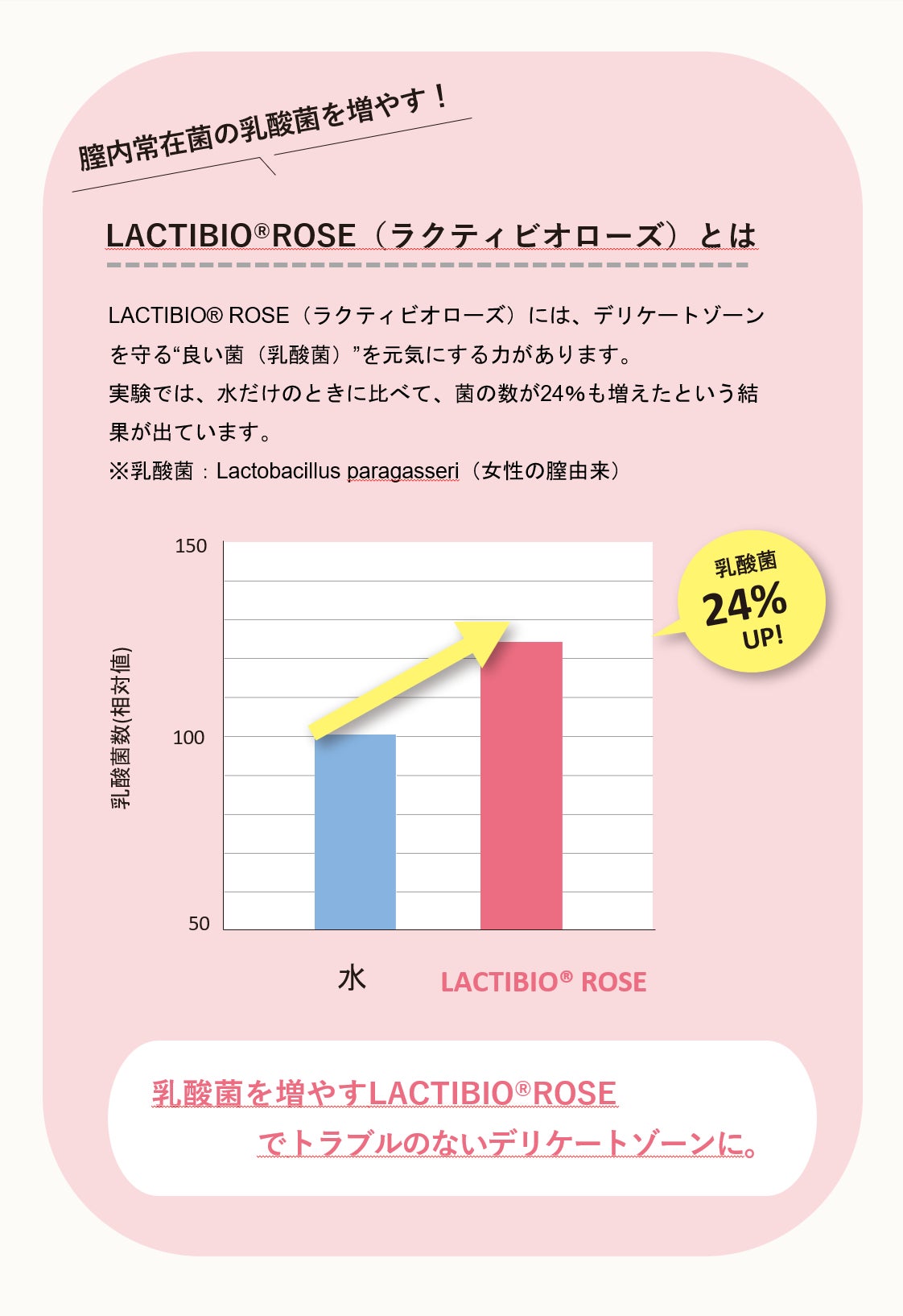 デリケートゾーンのpHバランスに着目し、膣由来の乳酸菌をサポート。