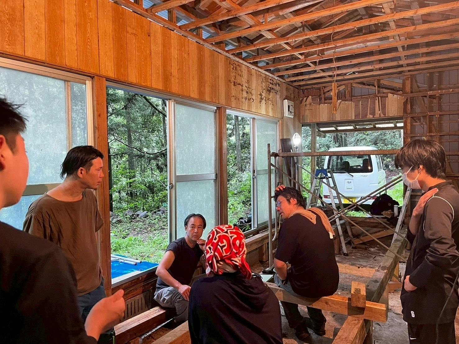 サークルのメンバーだけではなく、佐賀西高校の生徒も巻き込んで、賑やかに活動を行いました!また、鹿島に事務所を構える夢木香さんのご指導のもと、解体を進めました!