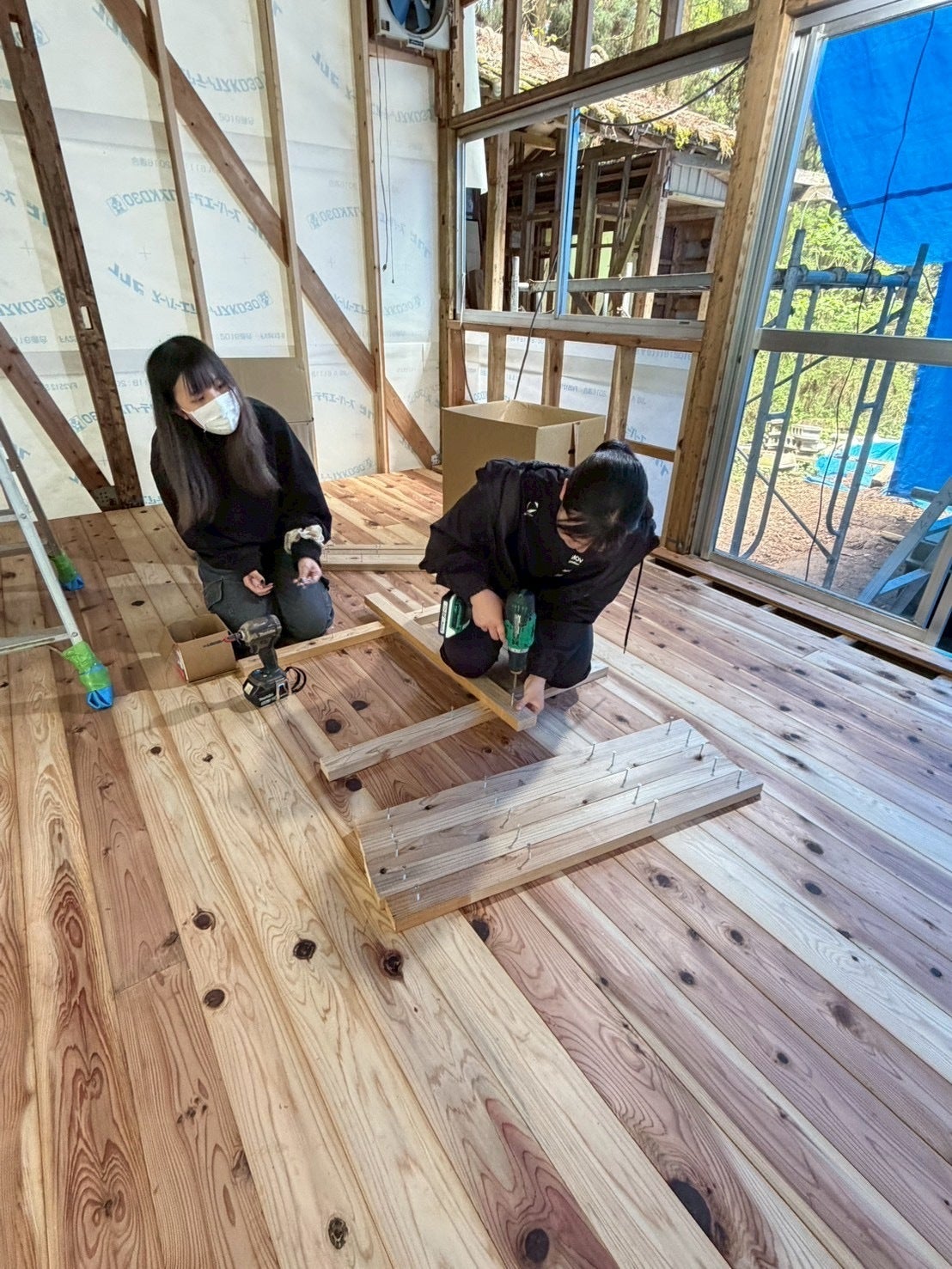 引き続き、インパクトを使う作業やノコを使う作業も 行っています!大工さんにやり方を教えてもらいながら、 少しずつですが、技術も向上しており前よりももっと作業がスムーズに行えるようになったと感じます。