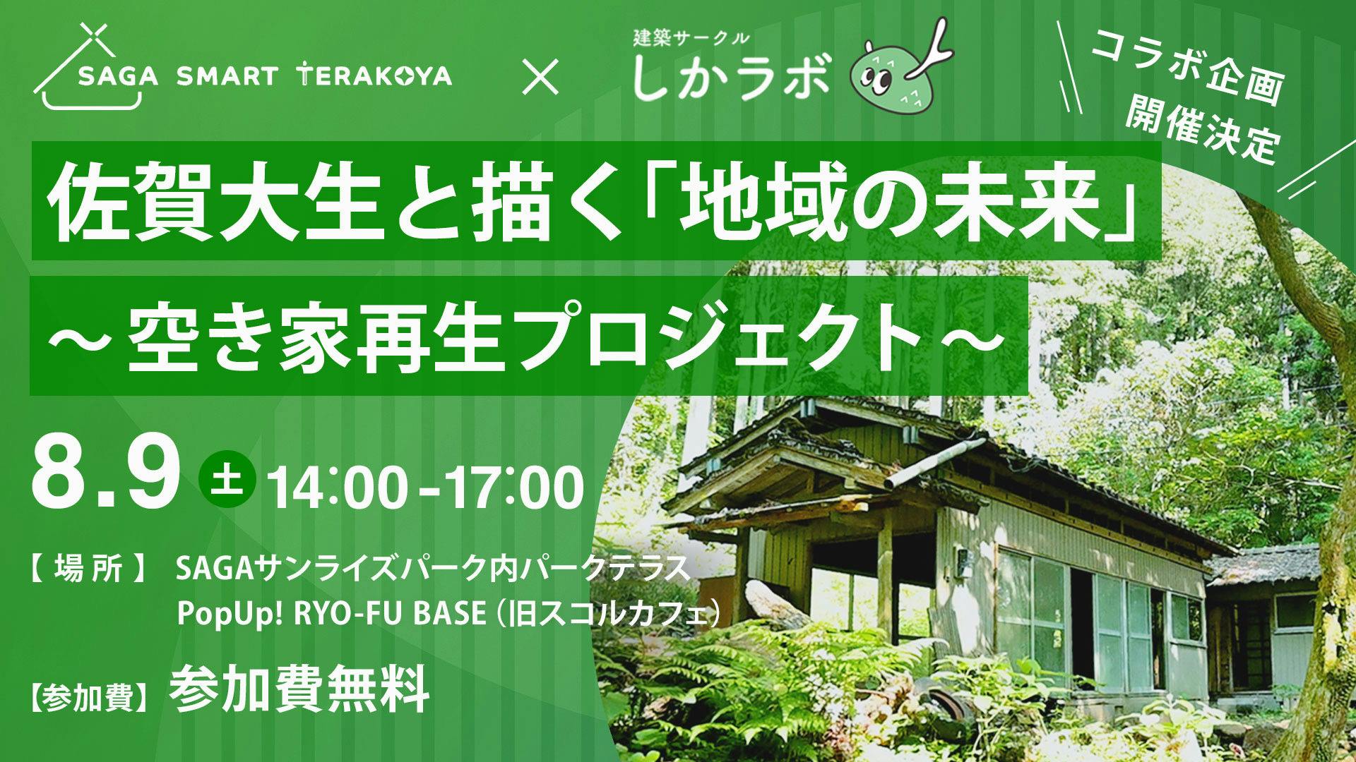 【残り若干名募集中!】8/9(土) SAGA Smart Terakoyaとのコラボ企画アイディアソン暑い日が続いていますが皆さん体調はいかがですか?改めて、今週末8/9(土)に開催される佐賀大学建築サークル「しかラボ」とTerakoyaとのコラボアイディアソンのご案内です!当日はしかラボが取り組んでいる「空き家再生プロジェクト」を題材に、再生した建物の活用方法についてのアイディアソンを開催します!現在、様々な分野の方々からお申し込みいただき、参加者同士いい出会いも生まれるイベントになりそうです!\定員まで残り若干名募集しております/皆さんのご参加お待ちしております!▼今回のしかラボ空き家再生プロジェクトのPR動画https://youtu.be/qlKE5AUByEw?si=14zUKIye_TdrUQa4▼▽申込はこちら▽▼https://forms.gle/stq2rJCueVwW5JZt7※申込締切:8/8(金) 18:00※定員:30名(会場の都合上、定員に達し次第締め切らせていただきます。お早めにお申込みください!)ーーーーーーーーーーー● 佐賀大生と描く「地域の未来」〜空き家再生プロジェクト〜アイディアソン日 時 令和7年8月9日(土)14:00〜17:00場 所 サンライズパーク内 パークテラスPop Up! RYO-FU BASE(旧スコルカフェ)定 員 30名参加費 無料※16:30〜交流会ありーーーーーーーーーーー特別なスキルや経歴は不要です!面白そうと思った方、色んな人とつながってみたいと思った方、大歓迎!ご参加よろしくお願いします!#地方創生 #関係人口 #地域おこし #空き家 #企画出し #イベント などに興味ある方、皆さんのアイデアと一緒に地域の未来を作りだすこの特別な企画で、私たちと一緒に挑戦してみませんか?