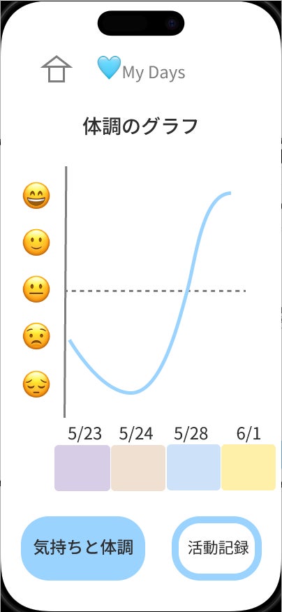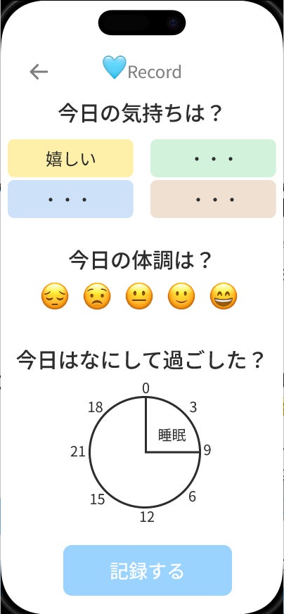 「嬉しい」「不安」などの気持ちや、「ぐったり」「元気」などの体調を、