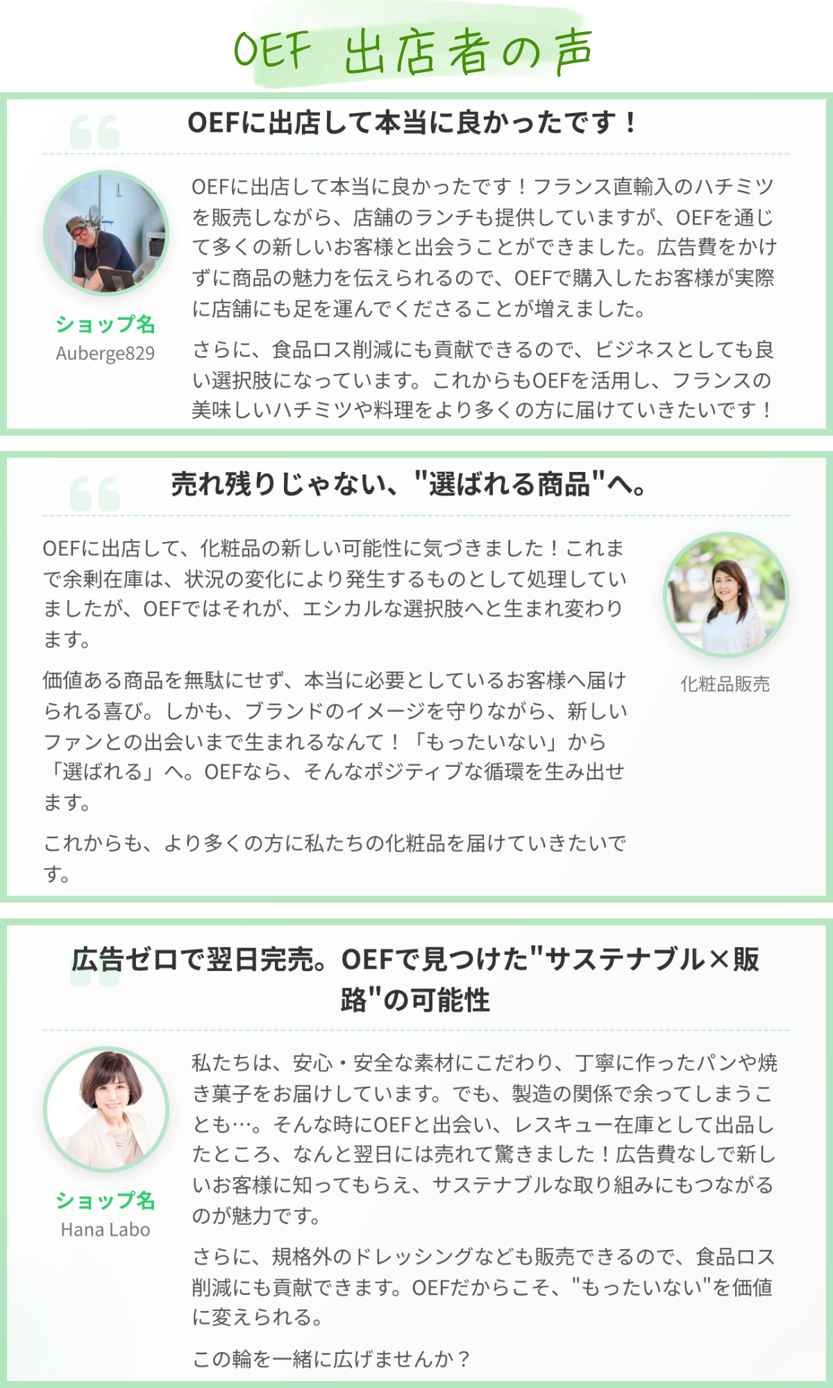 OEFに販売者として登録したい!とご希望の業者様向けのリターンです。
