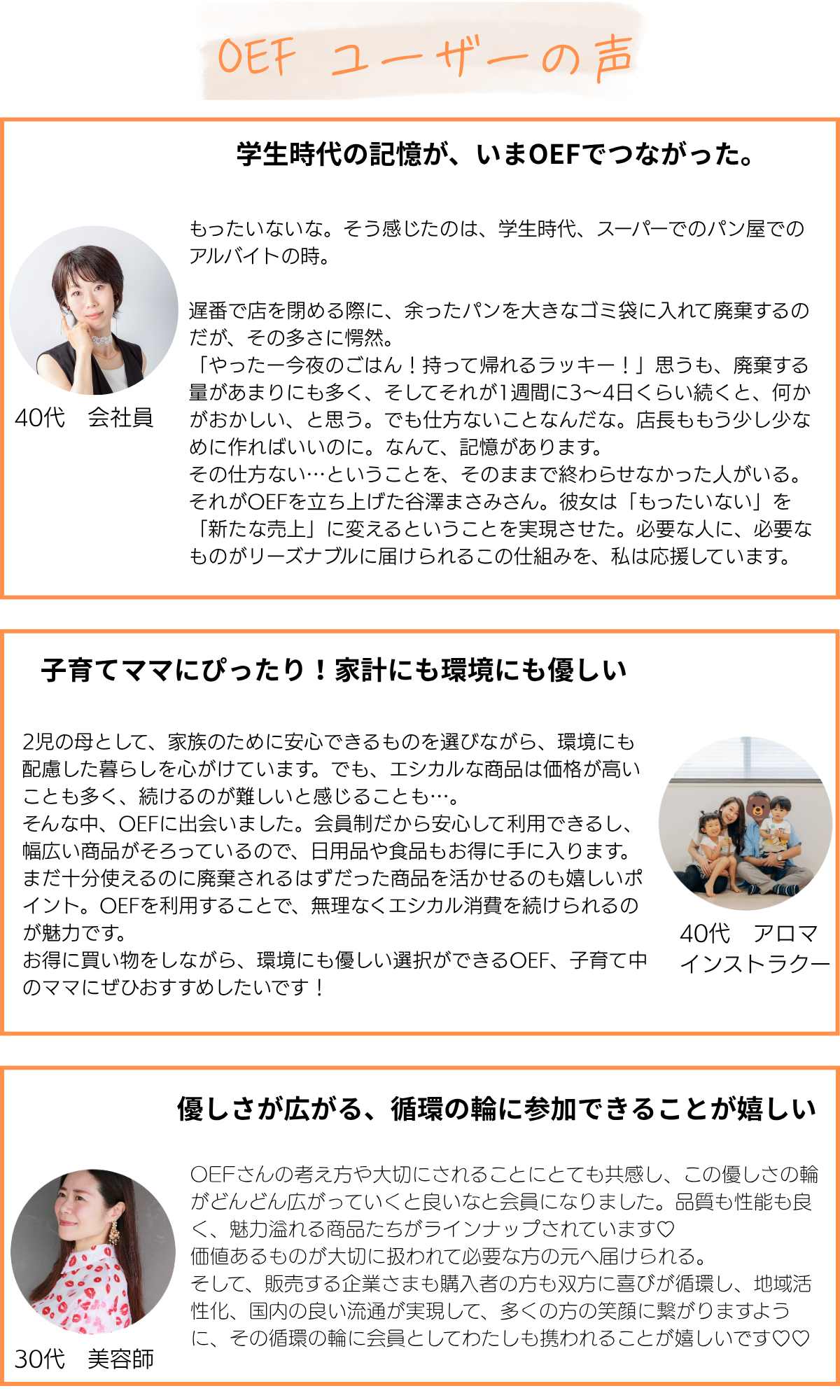 OEFは、消費者(エシカル会員)と販売者(サプライヤー)の双方が参加することで成り立つ、会員制のECプラットフォームです。
