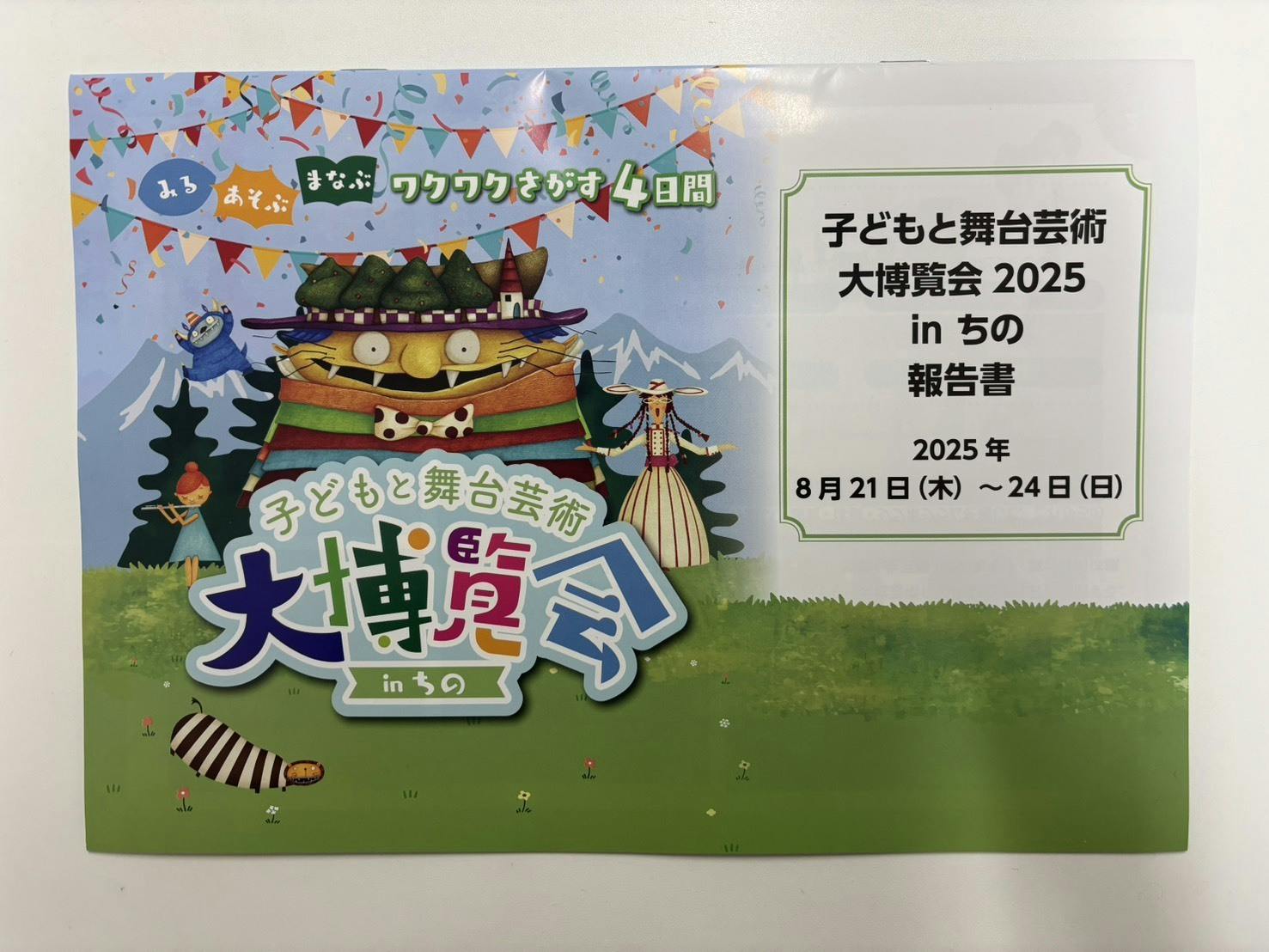2025/08/26 13:218月21日〜24日、茅野市民館にて開催しました「子どもと舞台芸術大博覧会 in ちの」おかげさまで、全てのプログラムを無事に終了いたしました。開催直前の決断として、<子どもは無料参加>とさせていただいたところ、当日は諏訪圏の本当にたくさんの子どもたちが会場に足を運び、思い思いに楽しむ姿があふれていました。このような取り組みが実現できたのは、クラウドファンディングを通じてご支援・応援くださった皆さまのお力のおかげです。心より感謝申し上げます。現在、詳細な開催報告をまとめているところです。完成しましたら、改めてこちらでご報告させていただきます。まずは終了のご報告とお礼まで。今後ともどうぞよろしくお願いいたします。 もっと見る