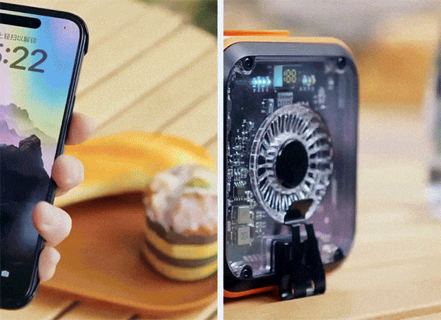 扇風機として使わないときは、モバイルバッテリーとしてスマートフォンなどのデバイスの充電に活用可能。本体に接続したままでも、バッテリーを取り外して単体でも使用できるため、シーンに応じて柔軟に対応できます。荷物を減らしたい外出時にも便利な、多機能設計です。