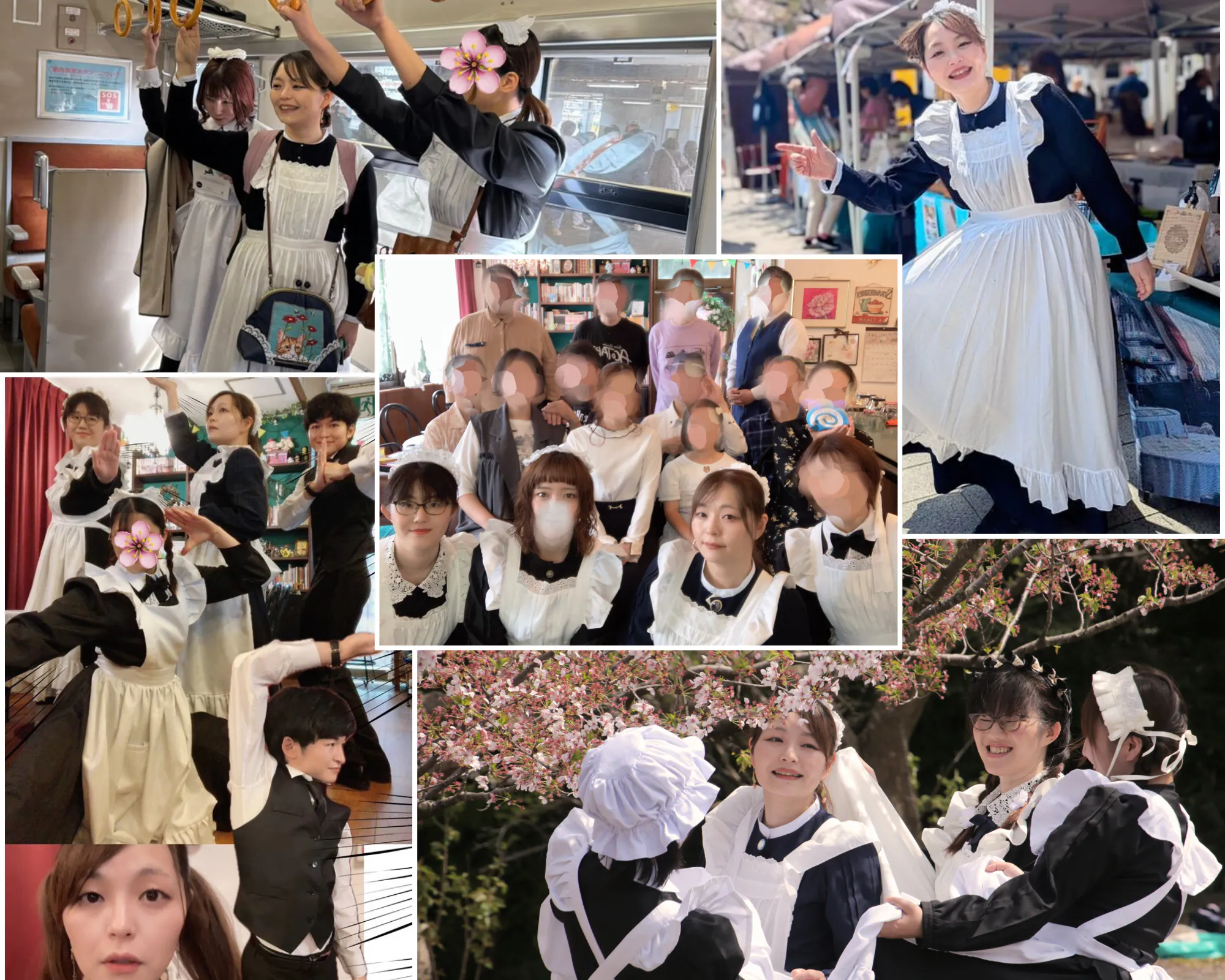 左下:ネットミームの再現、中央:周年パーティーでの集合写真、右下:お花見会