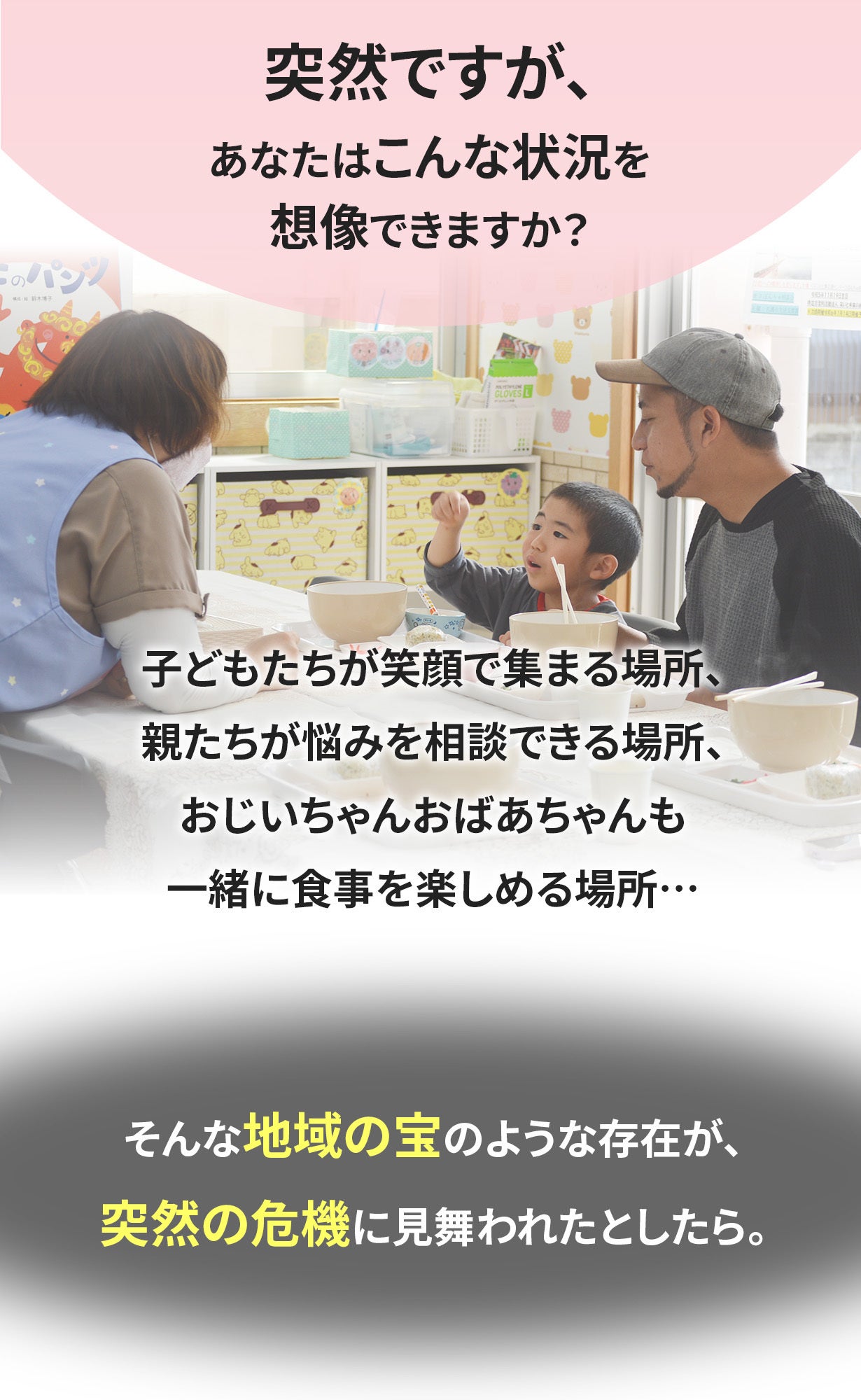 この危機が最も影響するのは、私たちの保育園に通う子どもたちと、おやこ食堂を利用する親子たちです。