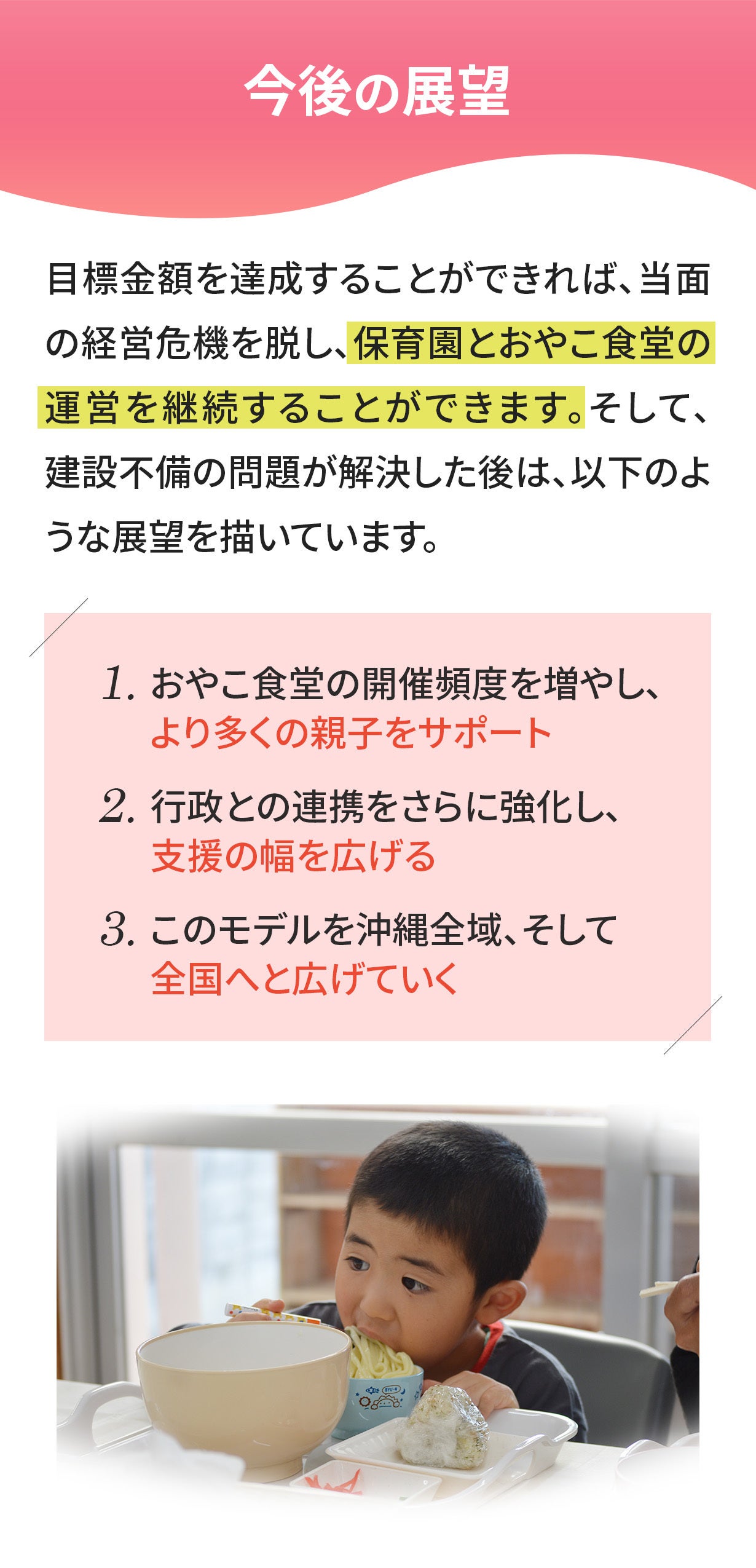 どうか、沖縄の親子の居場所を守るため、お力添えをいただけないでしょうか。