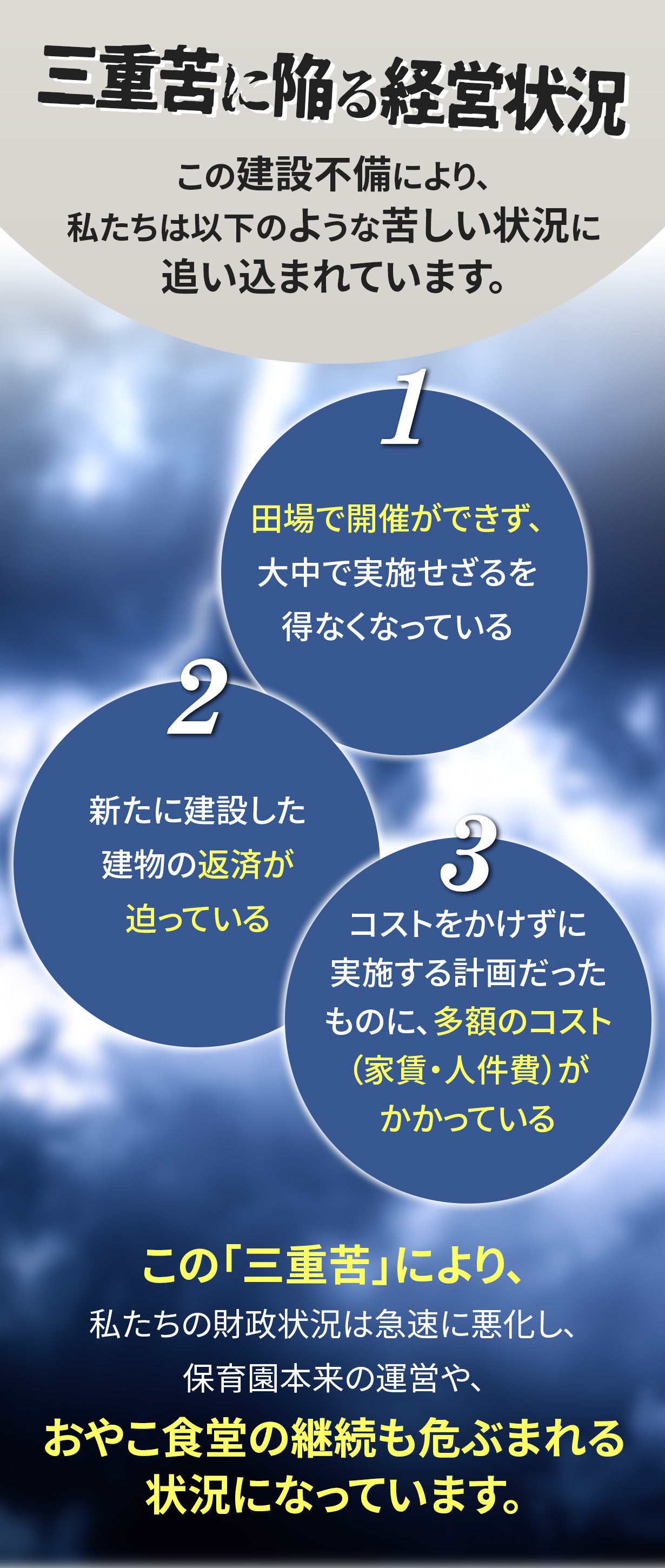 数千万円もの負債を抱え、二重の家賃負担という重荷の中、法的解決にも時間がかかる現状では、残念ながら自分たちの力だけでは活動を続けることが難しくなっています。