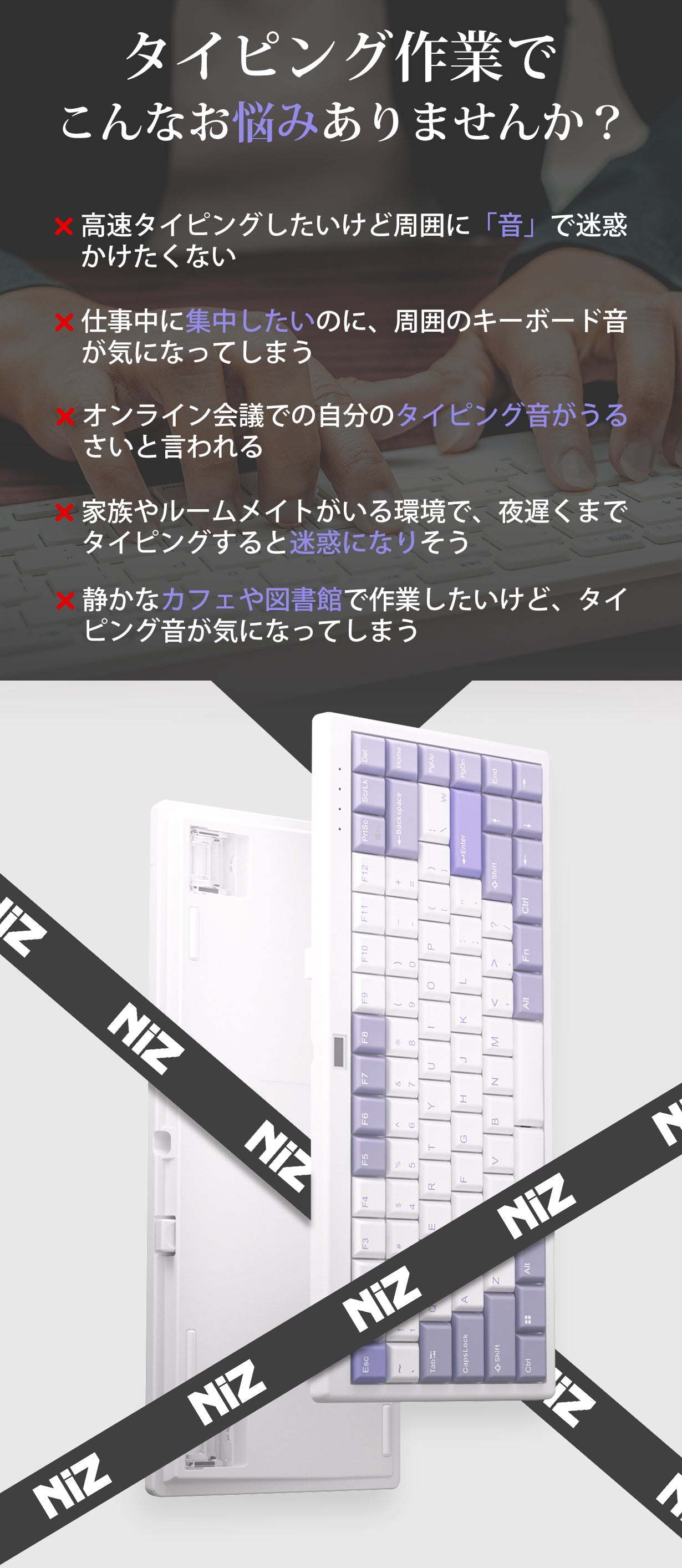 コタコタした打鍵音を楽しむ方がいますが、心地よい静寂の中でタイピングを瞑想のような体験にしたいと考える人もいます。