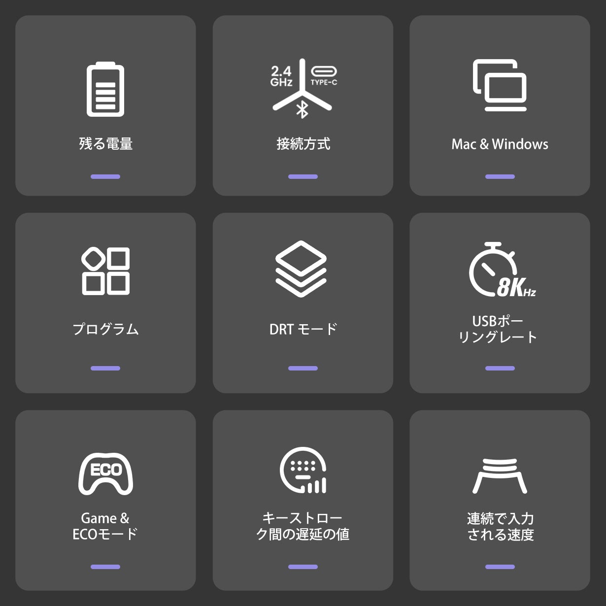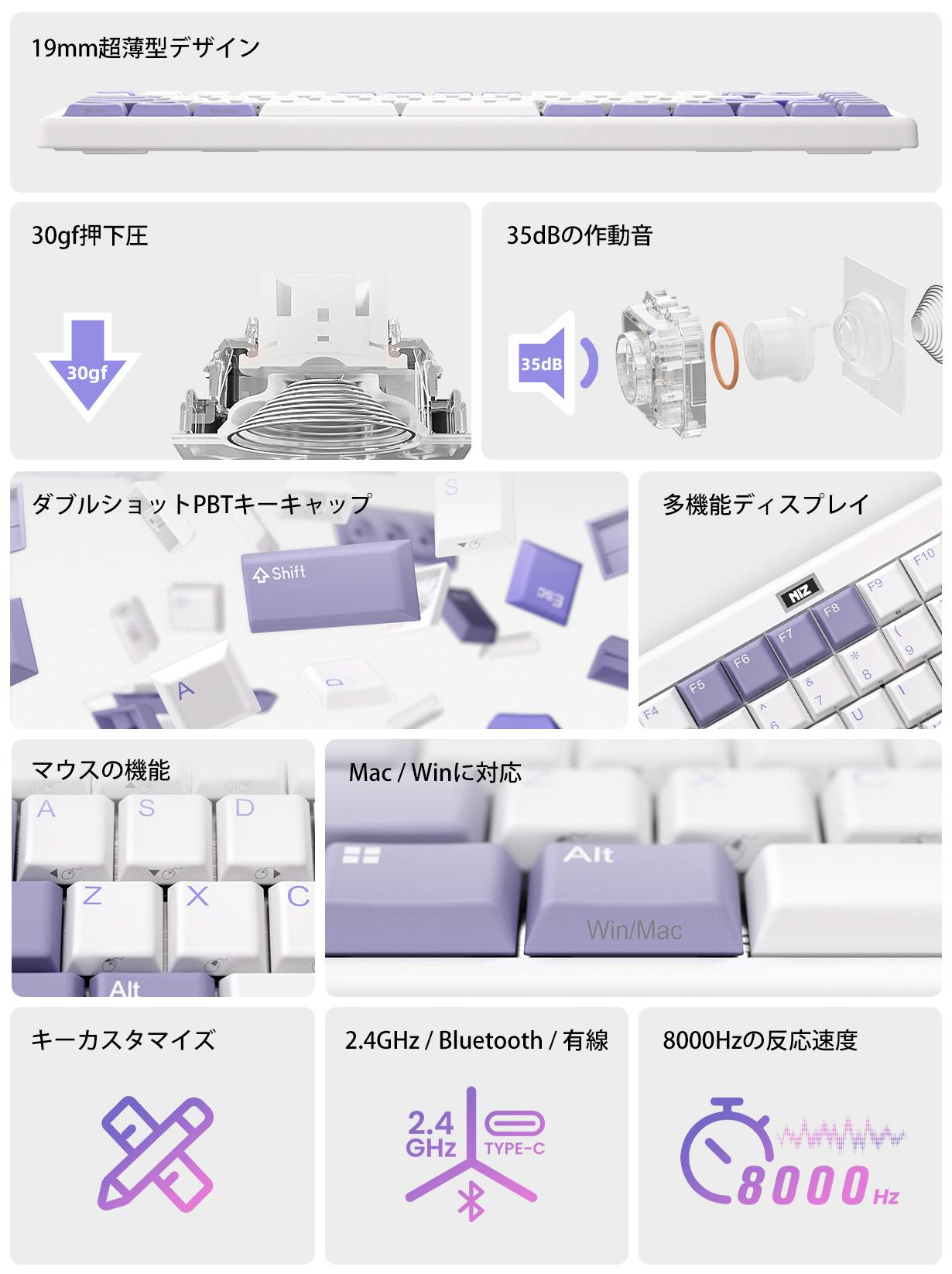 スムーズな打鍵感と驚異的な反応速度により、日常的な作業から激しいゲームプレイまで、あらゆるシーンで快適に対応可能です。