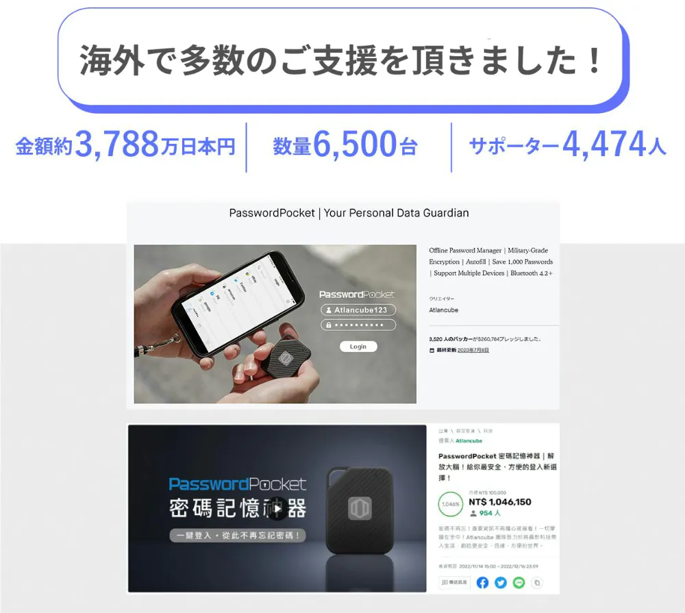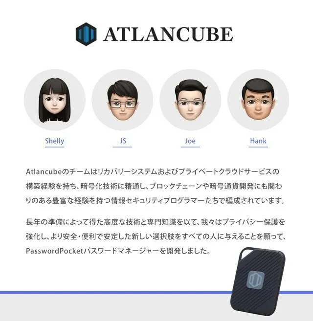 私たちAtlancubeはハイテク産業で世界の一歩先を行く台湾の企業です。私たちの開発した軍用レベルセキュリティのパスワードマネージャー、「PasswordPocket」は、ユーザーの皆さんの大切なデータや情報を安心して保存し、パスワード忘れも防いでくれるという、自信を持っておすすめできる新製品となっています。