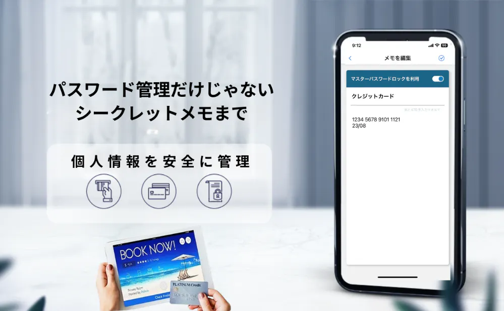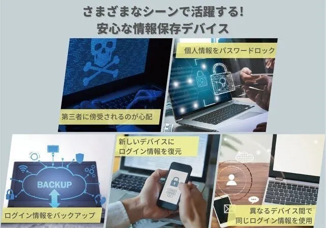 皆さまの日常に欠かせないパスワード等の情報をもっと簡単・安全に保存管理するお手伝いができればと思っております。