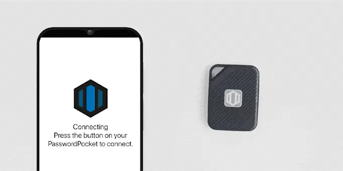 iOSまたはAndroidデバイスのいずれかにPocketアプリをダウンロードしてください。そして、PasswordPocketの中央のボタンを押すと、緑のインジケーターランプが点滅します。
