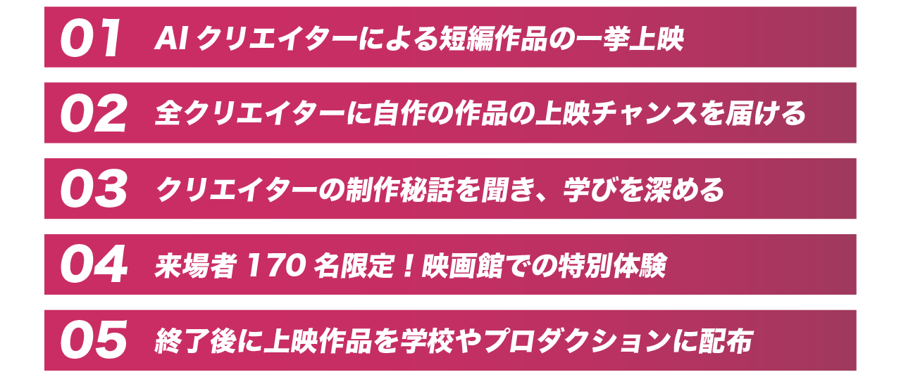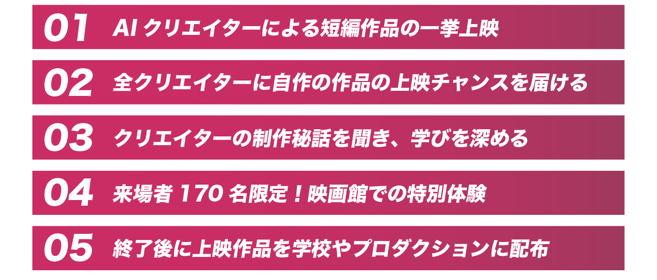 AI動画の祭典「AI gekijo」は、作品を「観る」「学ぶ」「発表する」ための特別な1日です。